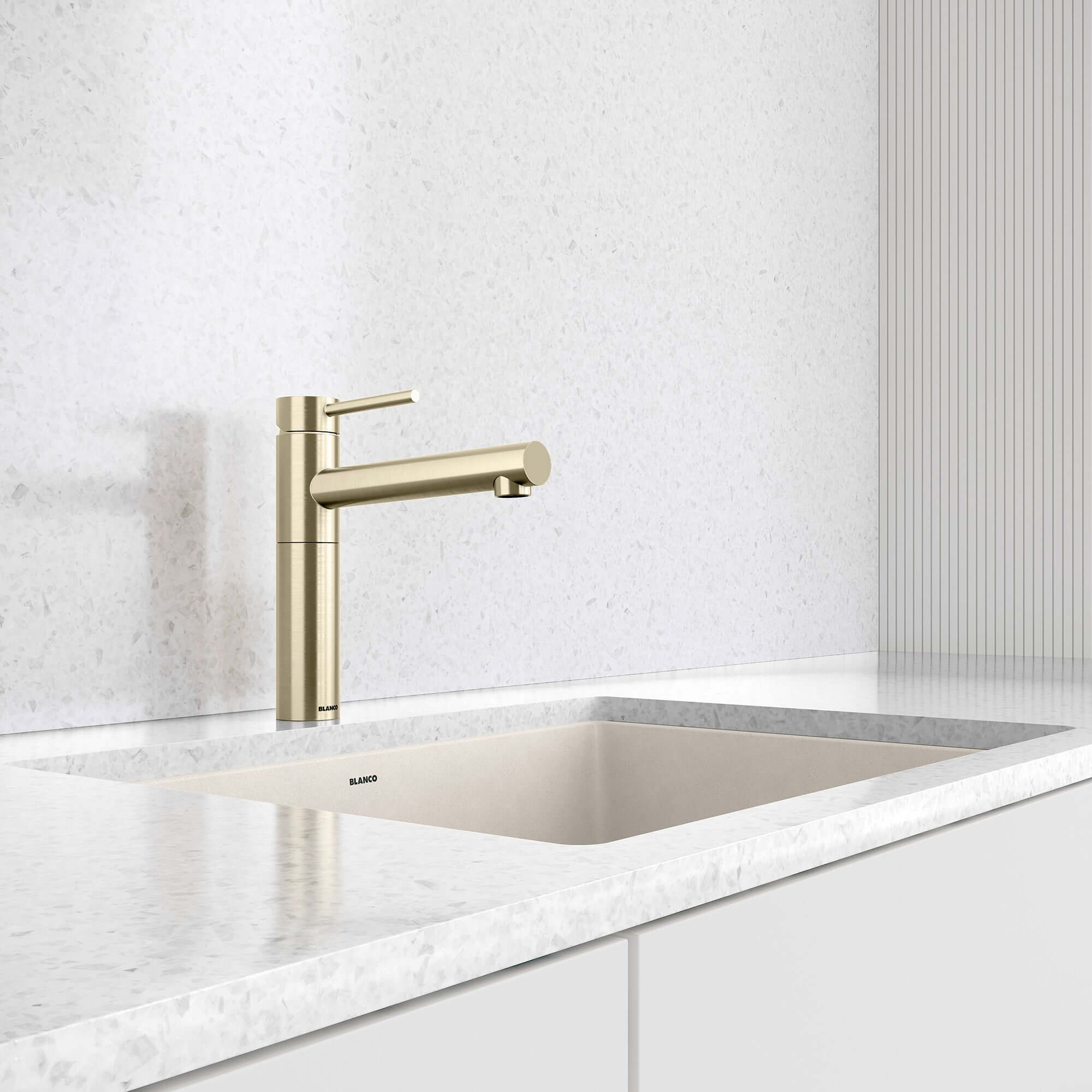 Maximize functionality in compact spaces with the BLANCO Alta II bar faucet, expertly engineered to deliver professional performance in a streamlined design that fits seamlessly into smaller kitchen areas, bar installations, and prep zones. The modern interpretation of BLANCO's classic compact faucet combines convenient top-mounted handle operation with a 360-degree swivel spout that provides extended range and flexibility for any sink configuration. The sleek chrome finish adds contemporary sophistication while the solid brass construction ensures long-lasting durability and corrosion resistance. Italian craftsmanship delivers precision engineering and quality materials that maintain reliable performance through years of daily use.