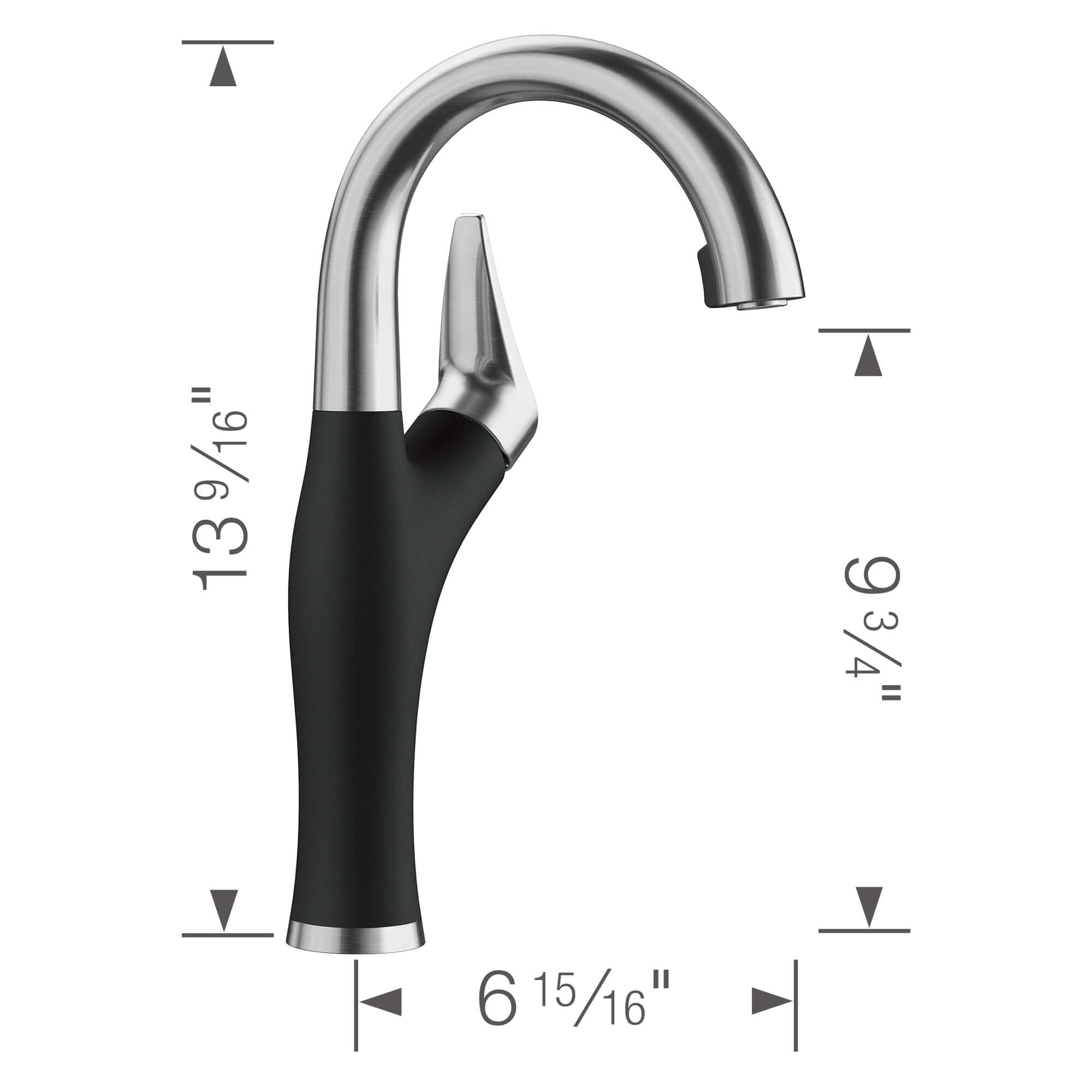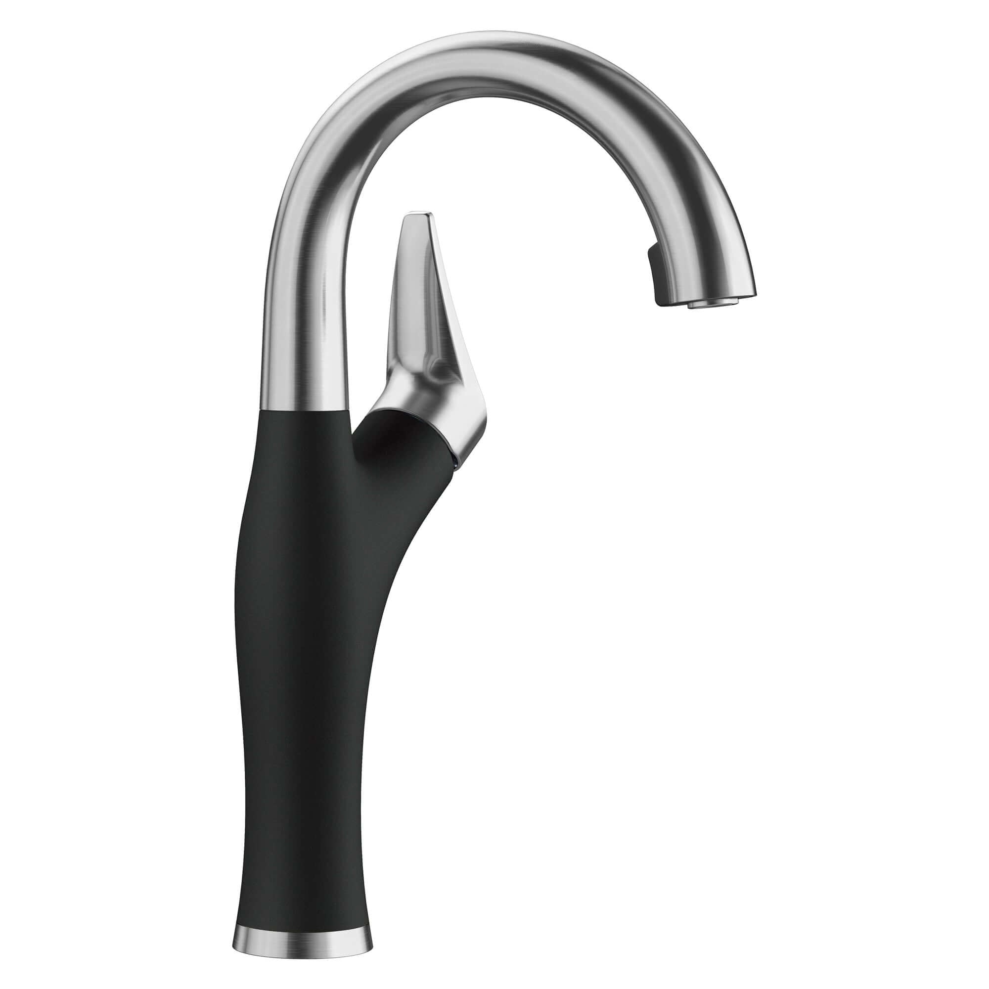 Elevate your bar or prep area with the BLANCO Artona pull-down bar faucet, distinguished by its Red Dot Design Award-winning aesthetic that combines artistic form with professional functionality. The compact 13.56-inch height fits comfortably below overhead cabinetry or in tight spaces where full-sized kitchen faucets would create clearance issues, making it ideal for kitchen islands, wet bars, butler's pantries, or smaller kitchens with limited vertical space. The hidden insulated pull-down dual spray delivers powerful performance in a streamlined package, allowing you to switch between aerated stream and spray modes with a simple button press. The exclusive PVD Steel finish coordinates beautifully with BLANCO's full spectrum of SILGRANIT sink colors, creating a cohesive design aesthetic that transforms your bar or prep area into a sophisticated focal point.