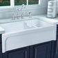 Glencove Fireclay 42" Large Double Bowl Reversible Sink with an Elegant Beveled Front Apron on One Side and a Decorative Lip on the Opposite Side