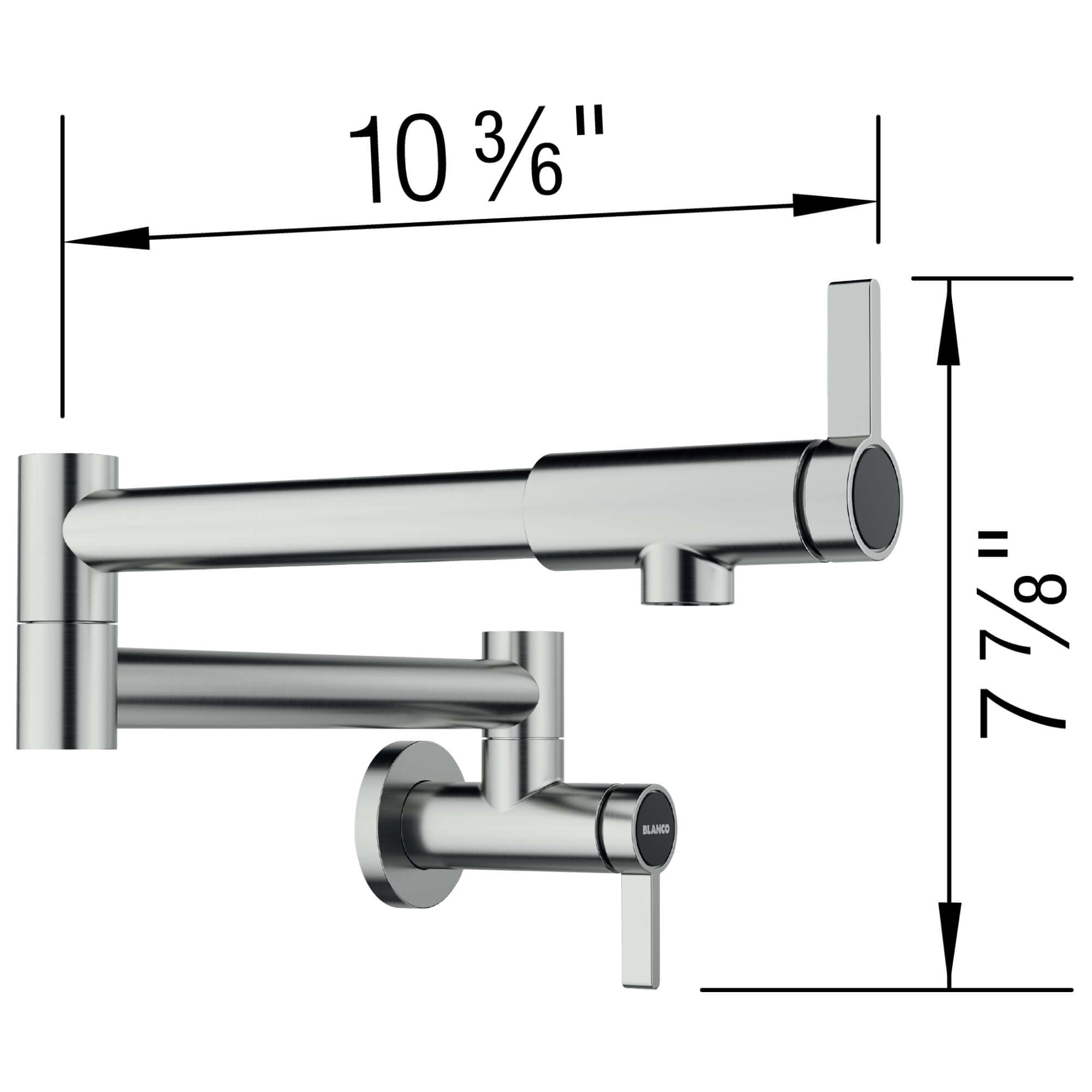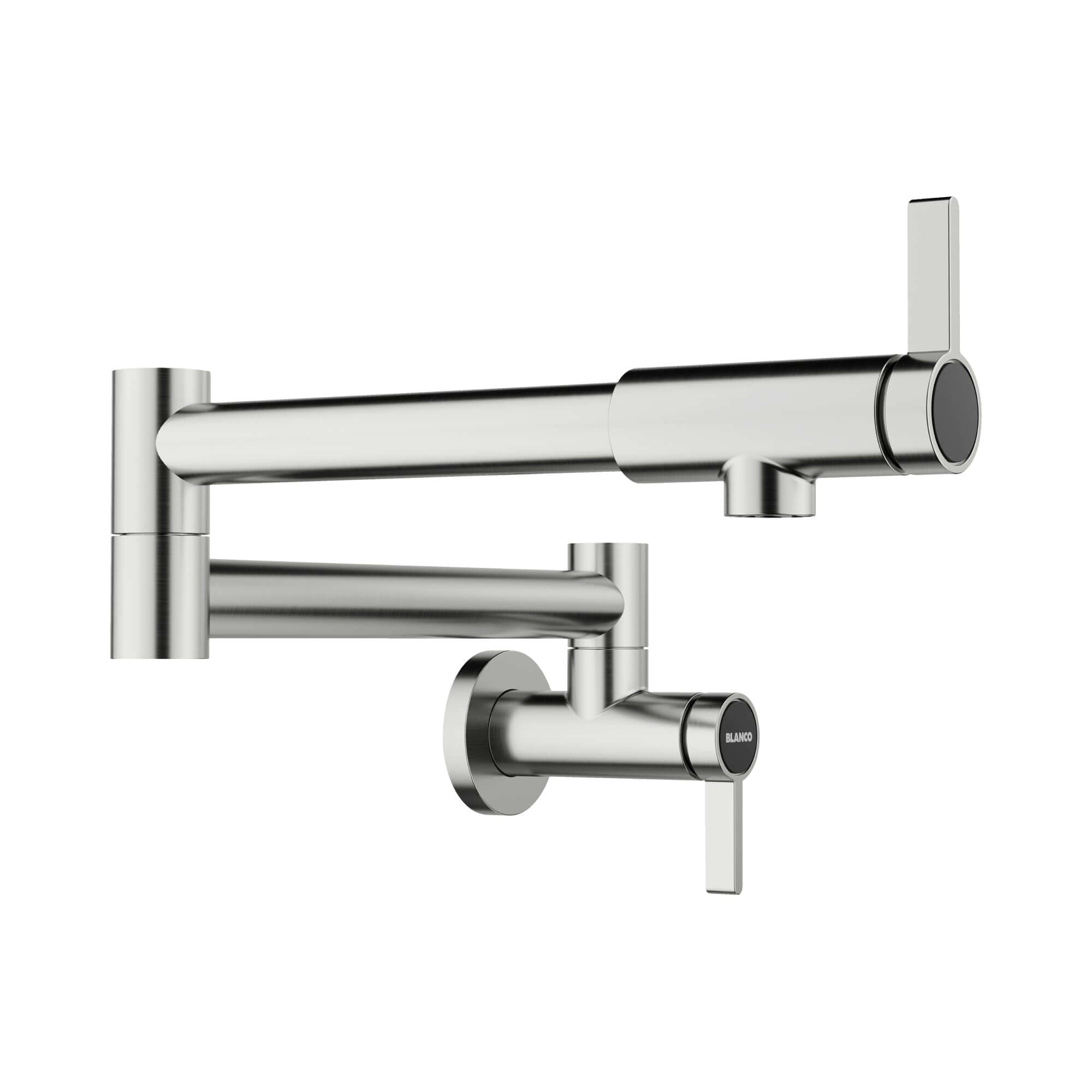 Transform your cooking workflow with the BLANCO Culina II Wall-Mounted Pot Filler, a professional-grade fixture that eliminates the need to carry heavy water-filled pots from sink to stove. This wall-mounted cold-water delivery system installs directly above your cooktop, providing convenient access to water exactly where you need it for boiling pasta, blanching vegetables, or filling stockpots. The articulated dual-arm design extends up to 20 inches from the wall, reaching across multiple burners to accommodate pots and pans of any size. Solid brass construction with premium metal finish ensures lasting durability and resistance to the heat and moisture of stovetop environments, while the professional styling adds sophisticated visual appeal to your kitchen workspace.