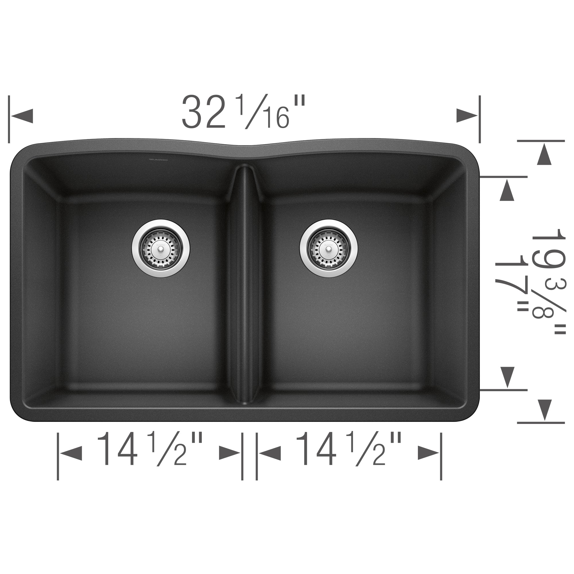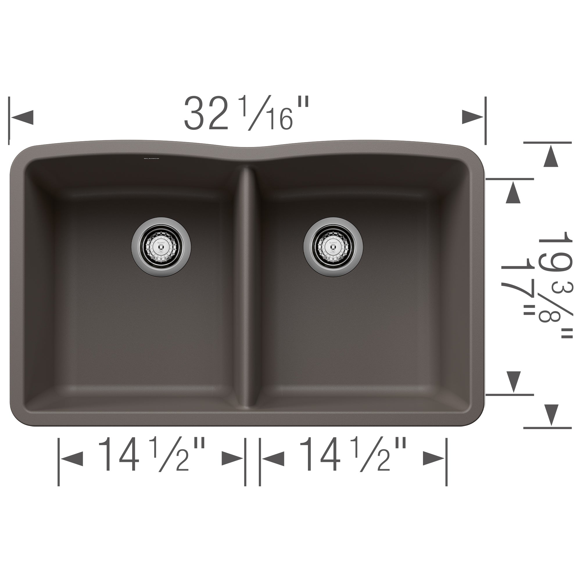 BLANCO Diamond SILGRANIT 32" 50/50 Double Bowl Undermount Kitchen Sink