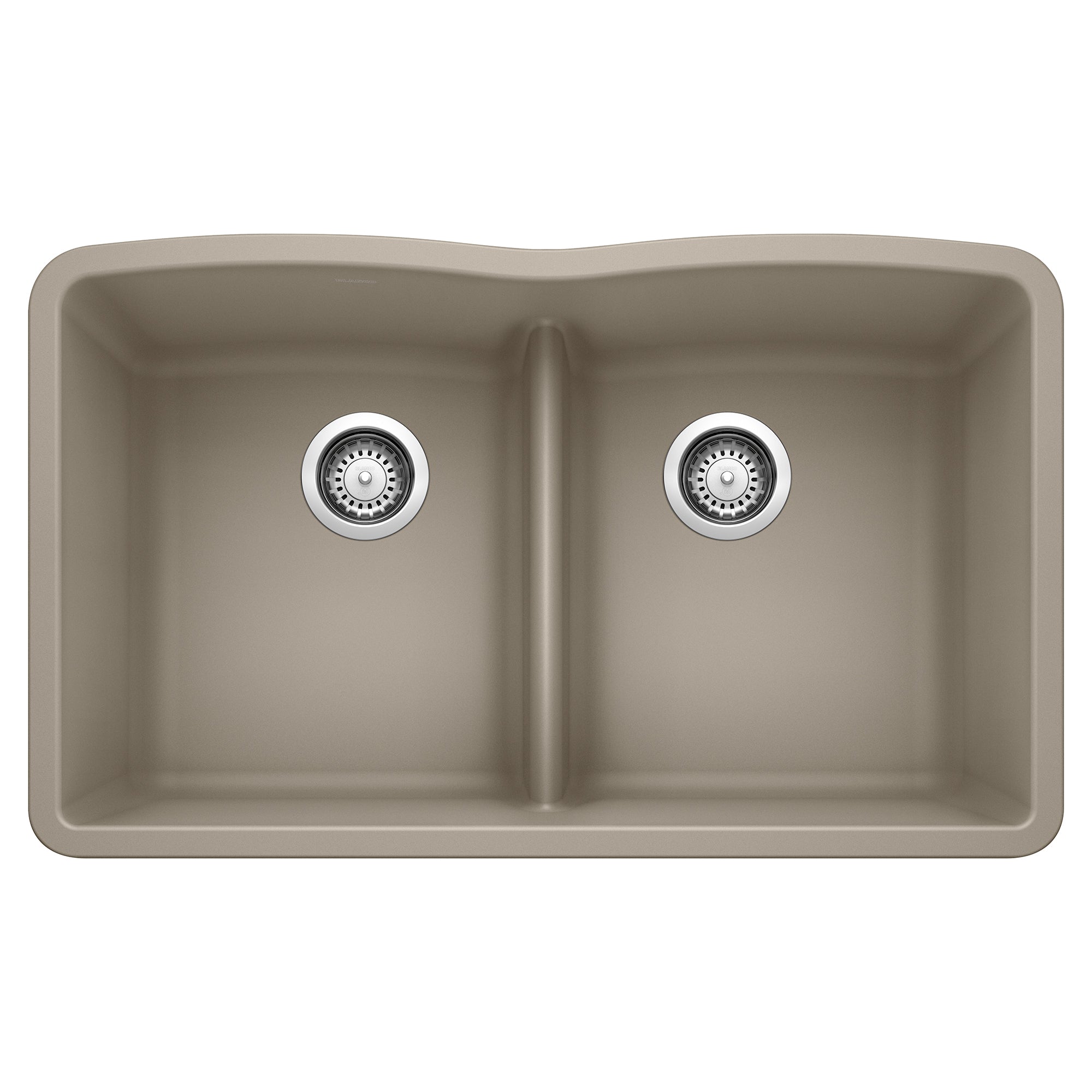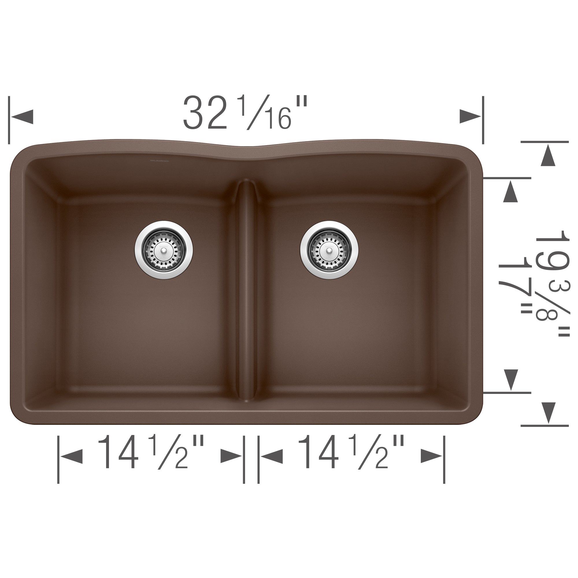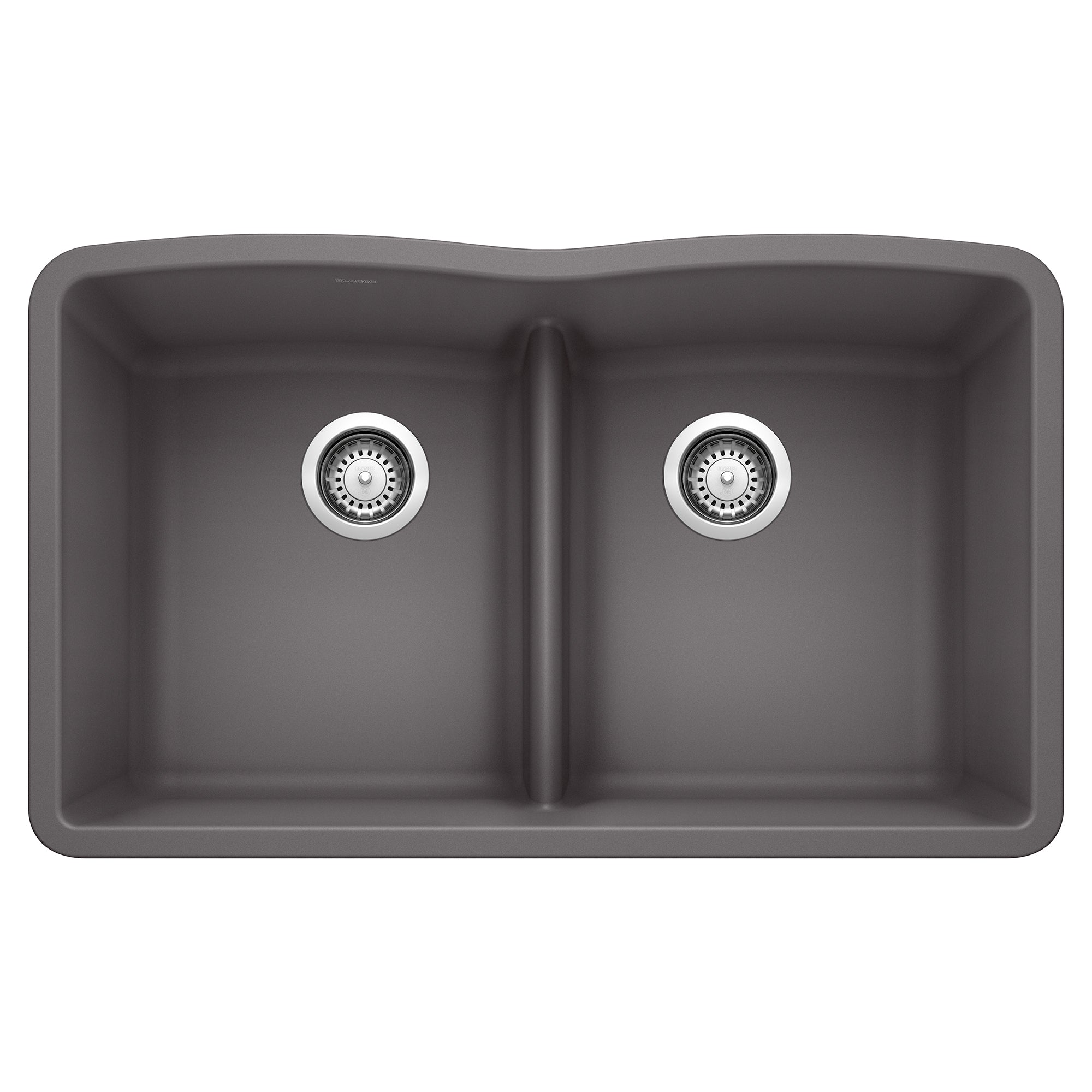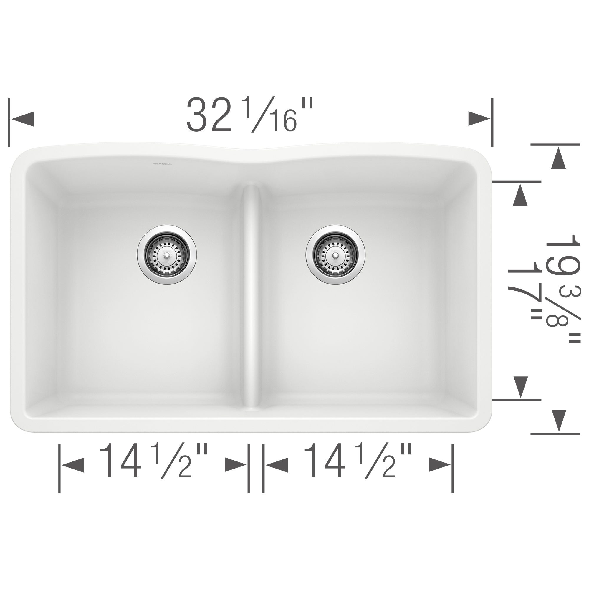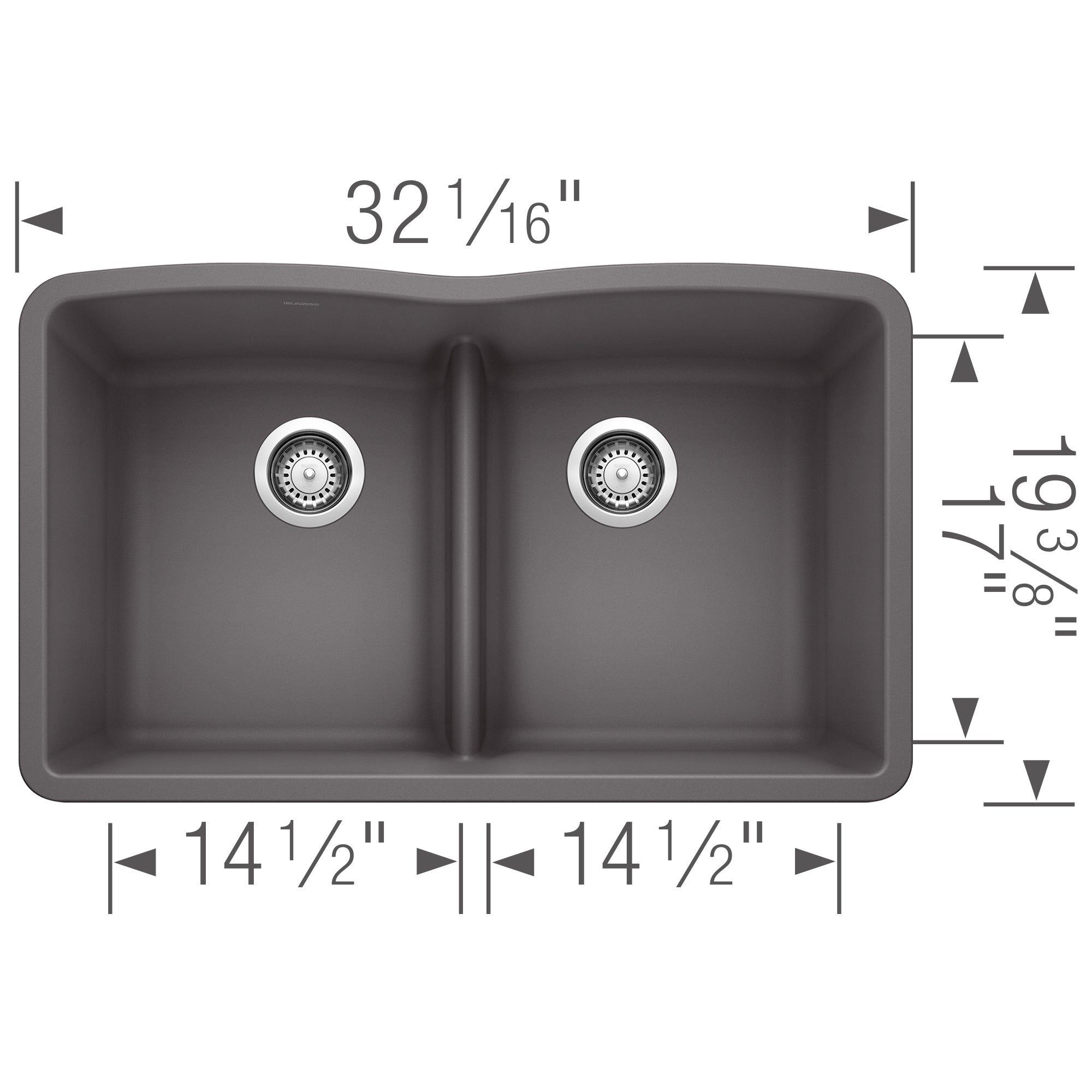 BLANCO Diamond SILGRANIT 32" 50/50 Double Bowl Undermount Kitchen Sink with Low Divide
