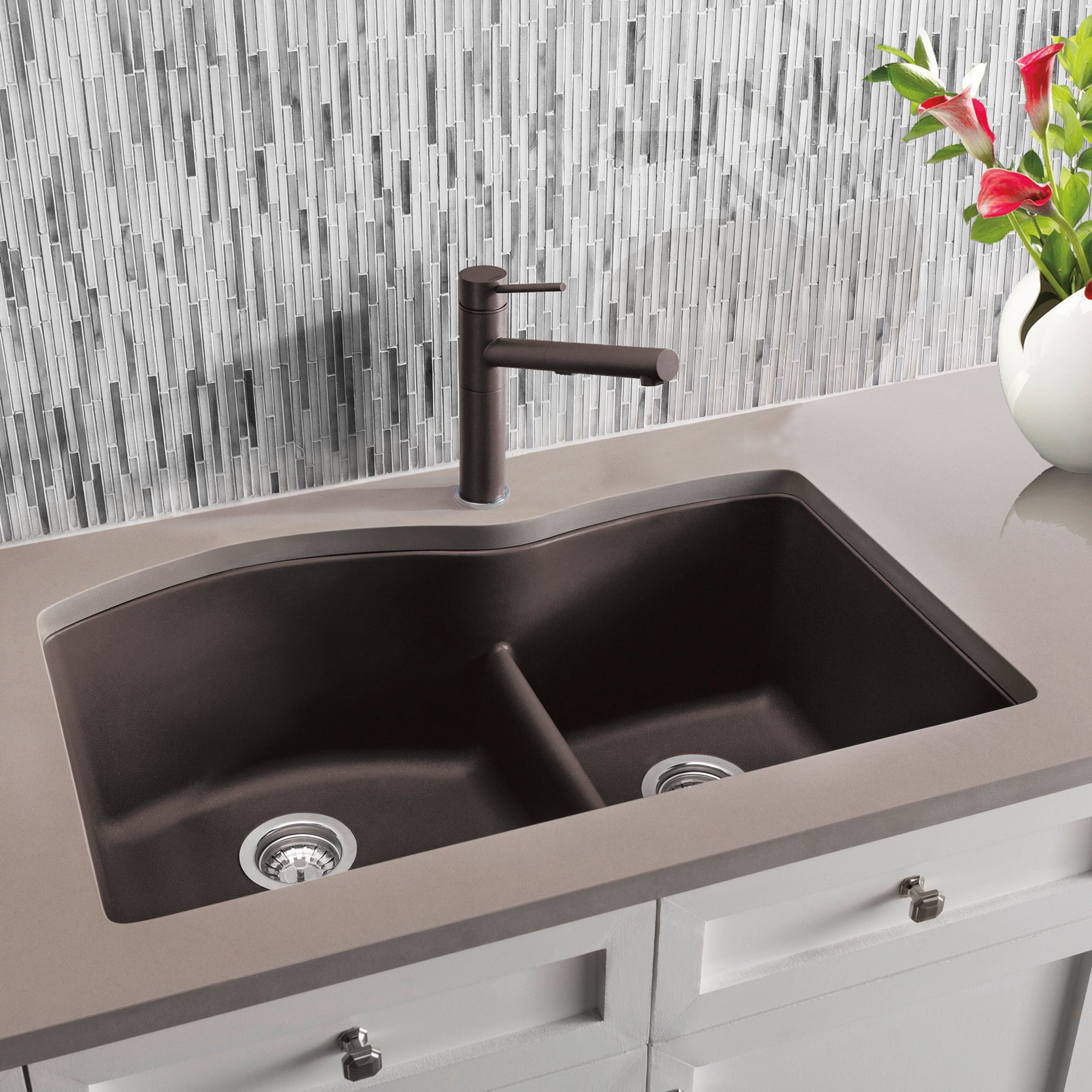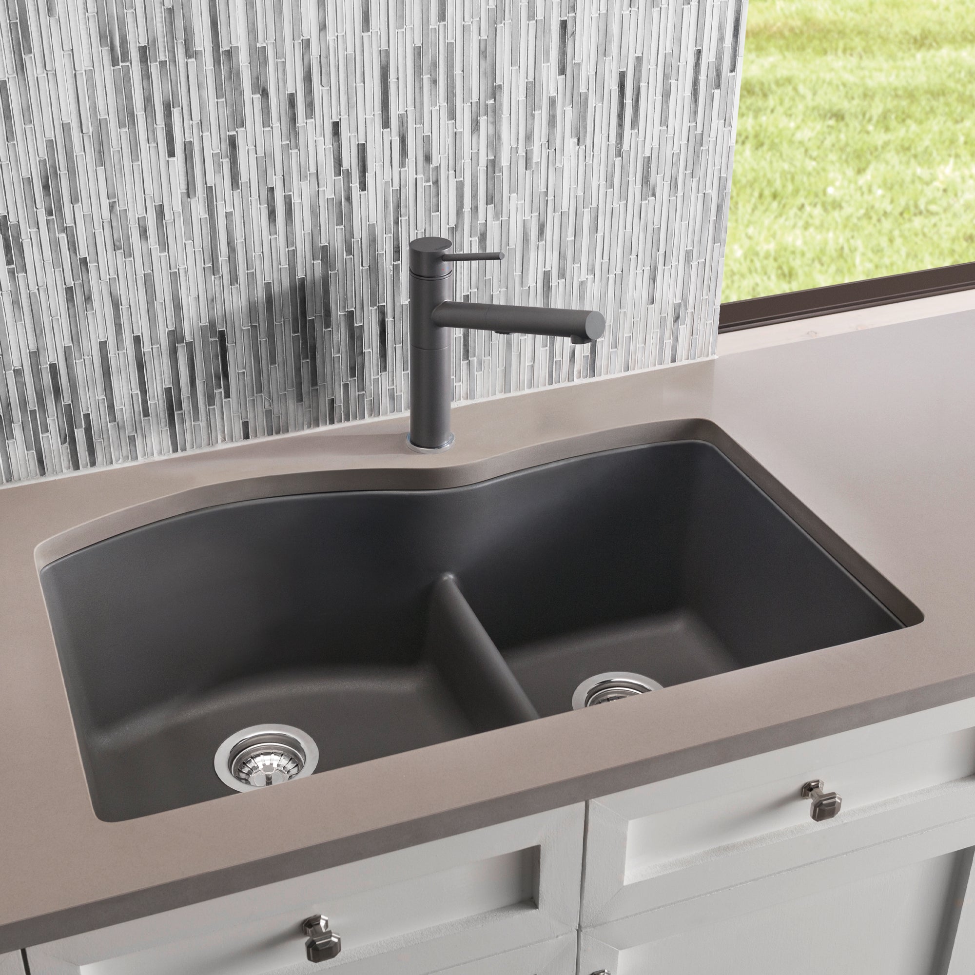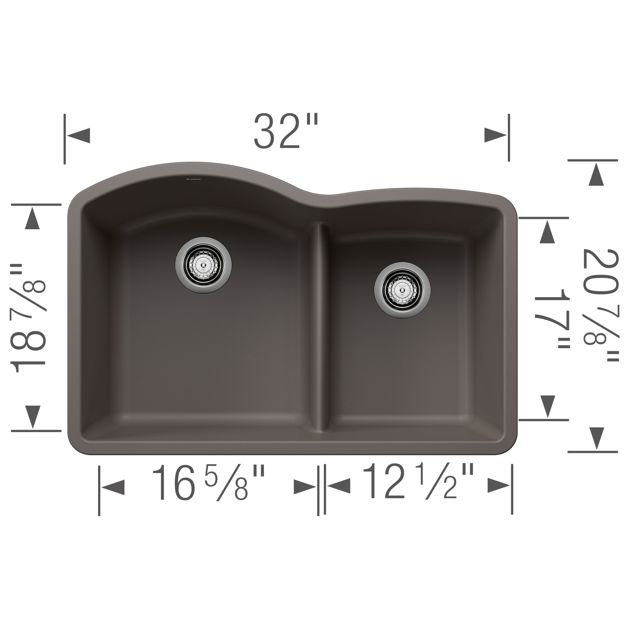 BLANCO Diamond SILGRANIT 32" 60/40 Double Bowl Undermount Kitchen Sink with Low Divide