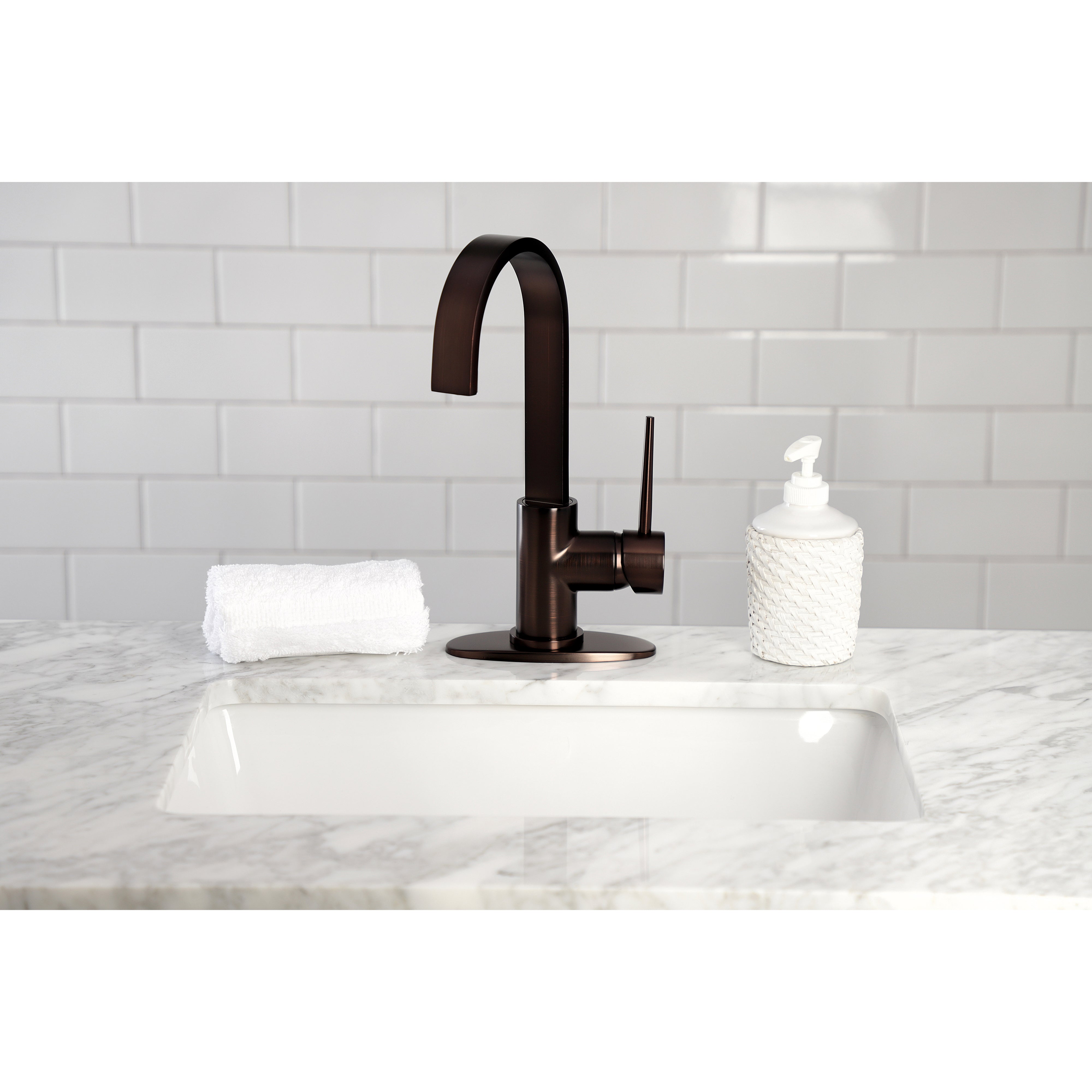 The Kingston Brass LS8618NYL New York Single-Handle Bar Faucet brings refined functionality to bar and prep sinks with its graceful gooseneck spout. The elevated arc provides generous clearance for filling tall pitchers and vases while the single lever handle offers precise temperature and flow control. Constructed from solid brass with a premium brushed nickel finish, this faucet delivers lasting durability and corrosion resistance. The ceramic disc cartridge ensures smooth, drip-free operation for years of reliable service.