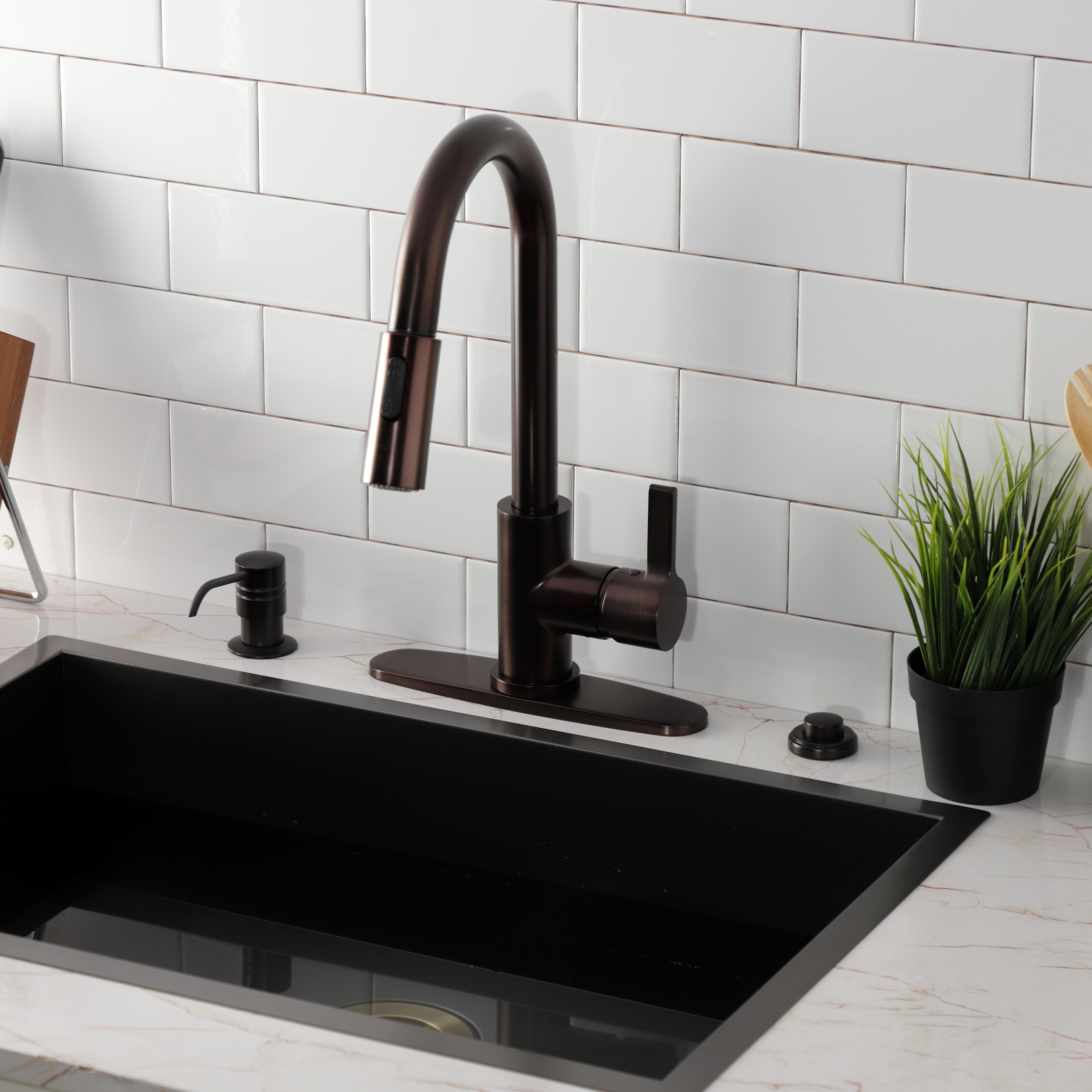 Pull-down sprayers offer superior versatility and reach compared to standard faucets. The sprayer head extends directly from the spout, allowing you to direct water precisely where needed for rinsing dishes, cleaning the sink, or filling containers outside the sink basin. The dual-function spray modes provide both a concentrated stream for filling and a wider spray pattern for rinsing, making kitchen tasks more efficient. The high-arc design ensures the sprayer retracts smoothly and stays securely docked when not in use.