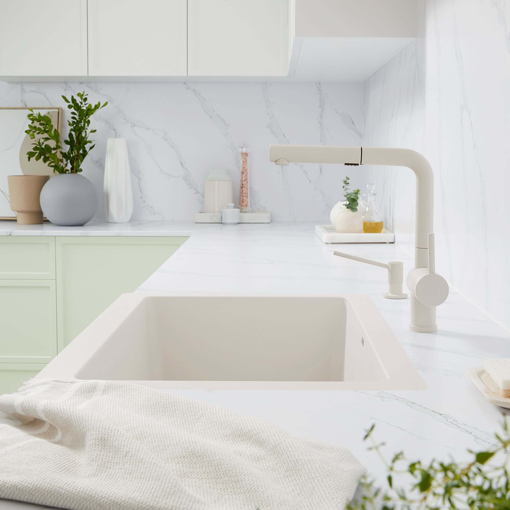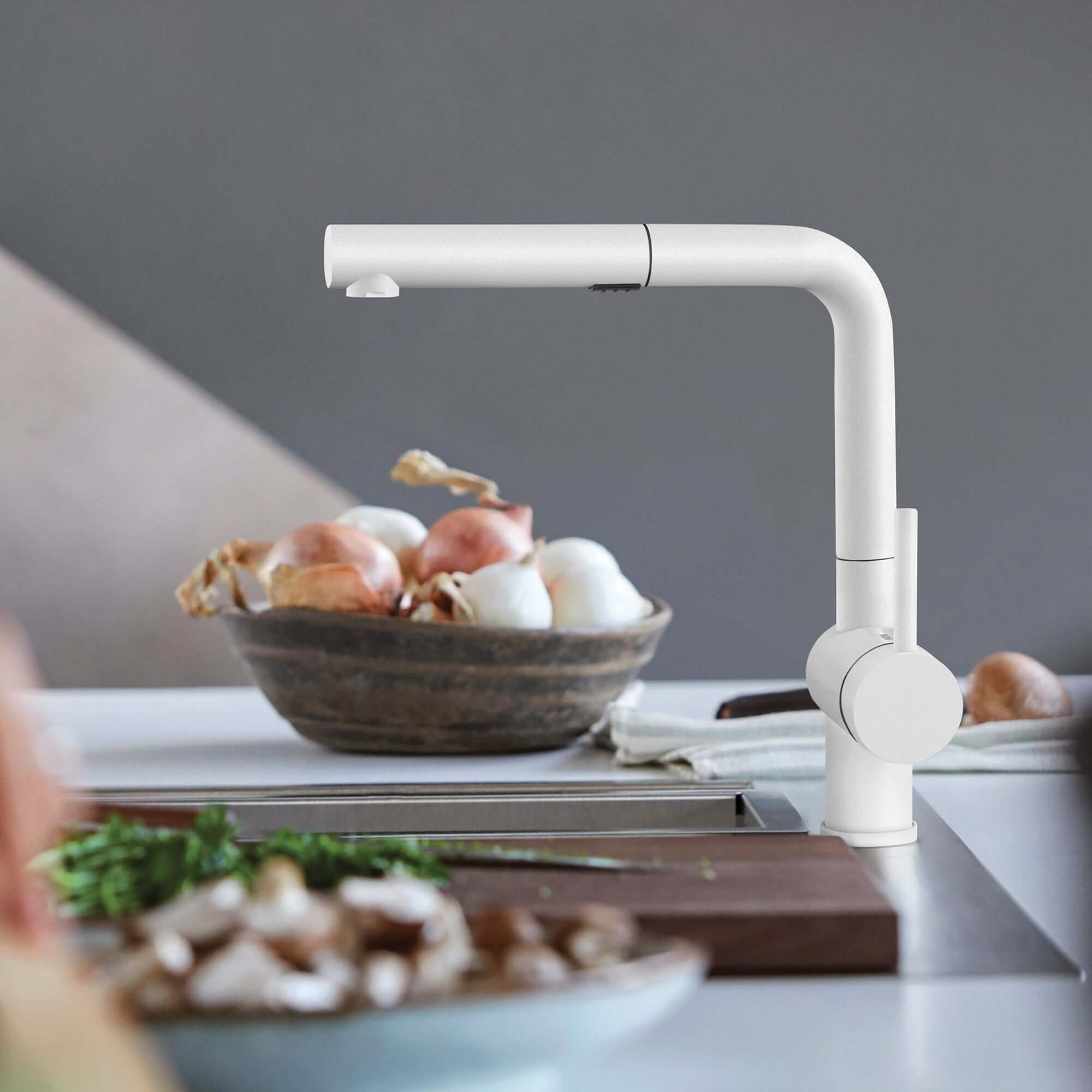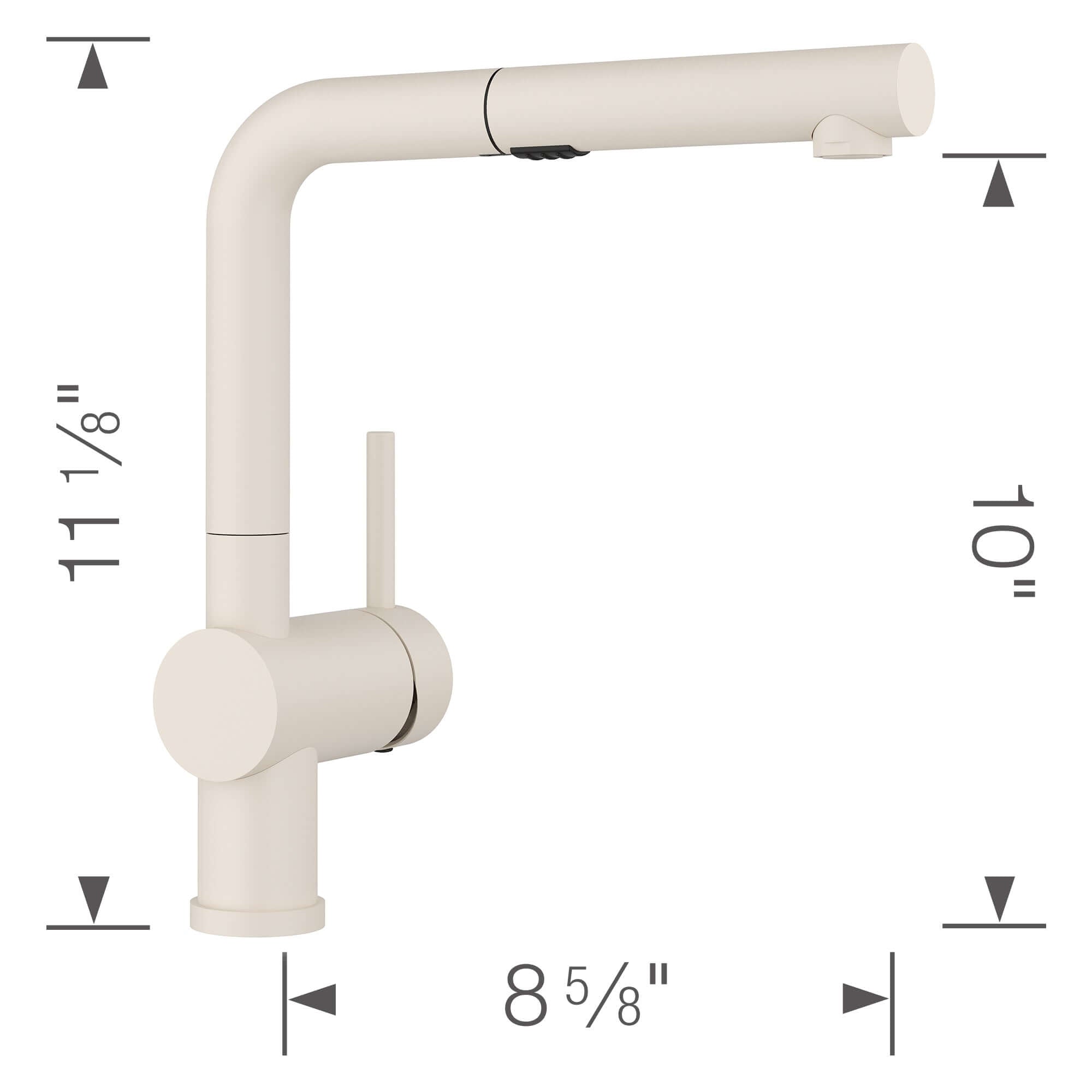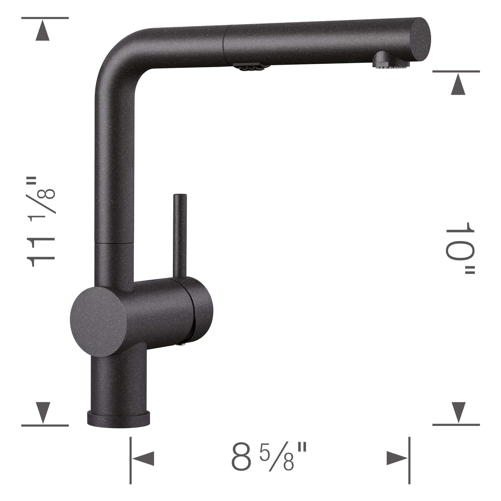 Maximize functionality in kitchens with overhead cabinets or limited vertical clearance with the BLANCO Linus low arc pull-out faucet, expertly engineered to deliver professional performance in a sleek, space-efficient profile. The compact 11.13-inch overall height fits comfortably below upper cabinetry where traditional high-arc faucets would interfere with cabinet doors or create awkward working conditions. The bold, angular design brings contemporary sophistication to your kitchen workspace, while the exclusive Anthracite finish coordinates beautifully with BLANCO's full spectrum of SILGRANIT sink colors, allowing you to create a cohesive design aesthetic without costly remodeling. The pull-out insulated hand spray extends your reach across the sink basin while maintaining the low-profile silhouette when retracted, providing the functional benefits of larger faucets without compromising on clearance requirements.
