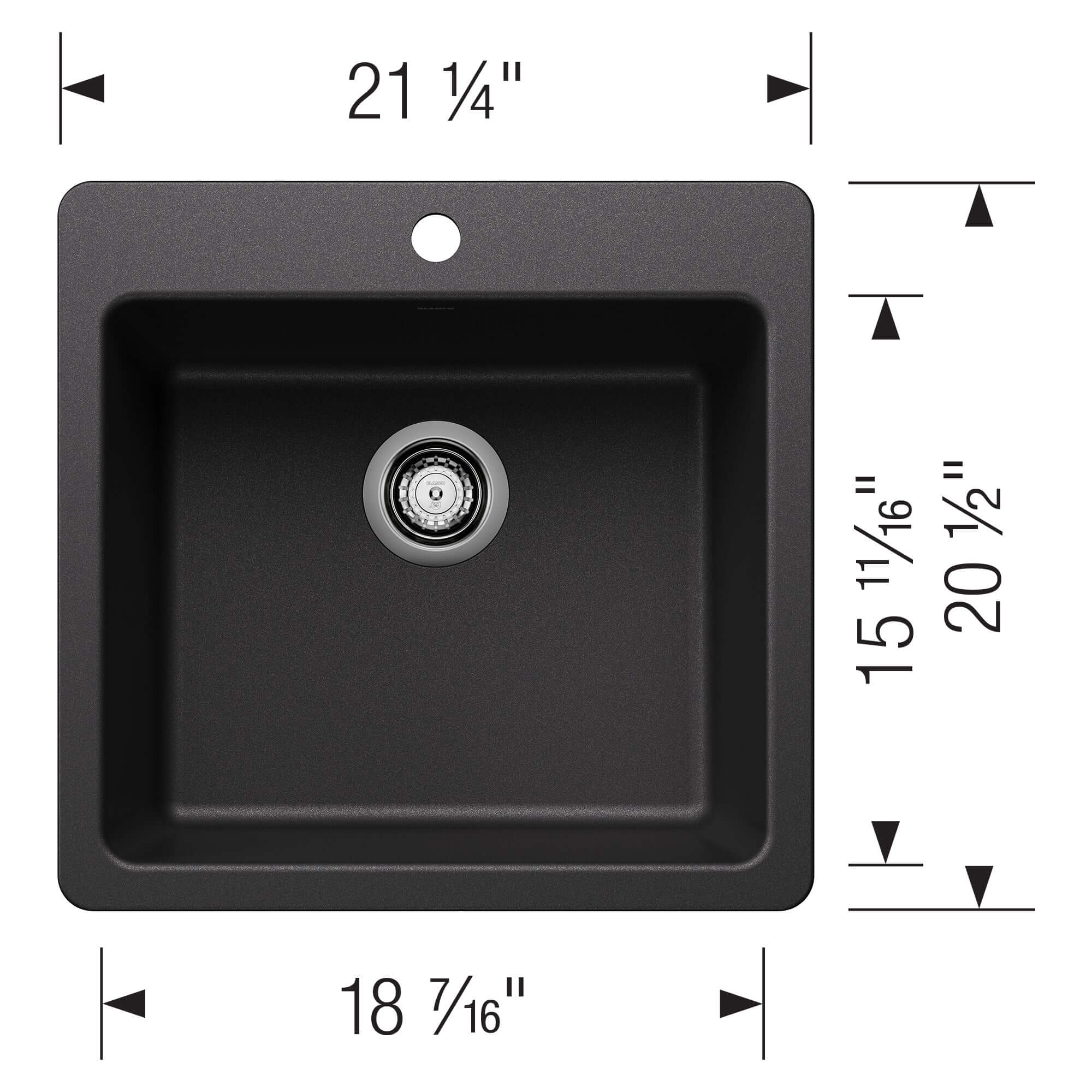 BLANCO Liven SILGRANIT 21" Single Bowl Dual Mount Kitchen Sink