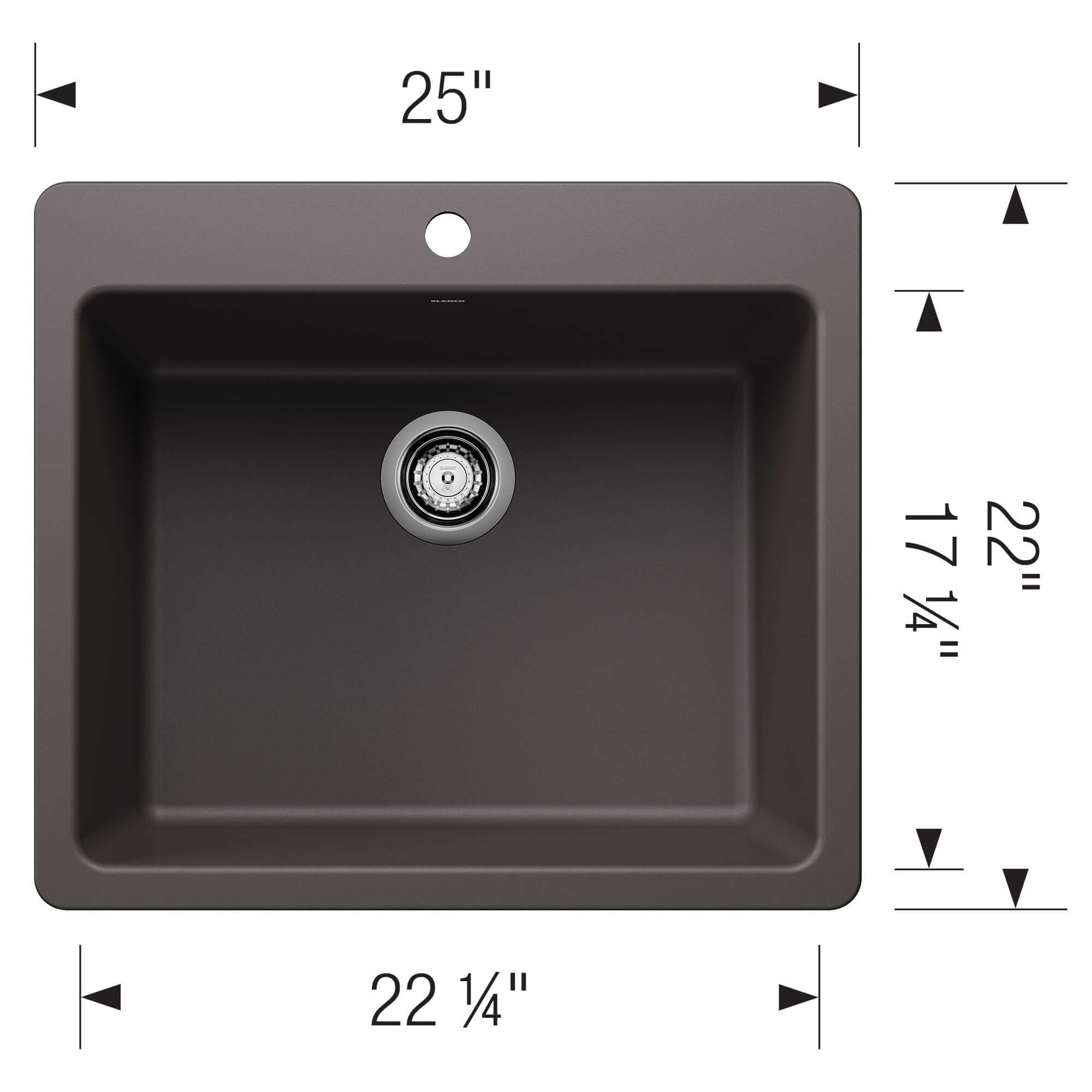 BLANCO Liven SILGRANIT 25" Single Bowl Dual Mount Kitchen Sink