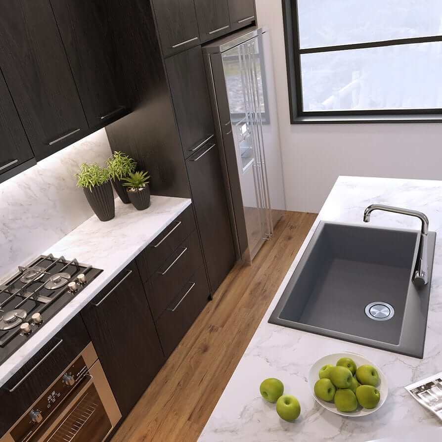 Crafted in Italy from high-quality granite composite with 80% natural stone content, this sink delivers exceptional resistance to stains, scratches, and thermal shock up to 560°F. The naturally sound-absorbing stone material creates a quieter kitchen experience, while the non-porous surface ensures lasting durability and easy maintenance.