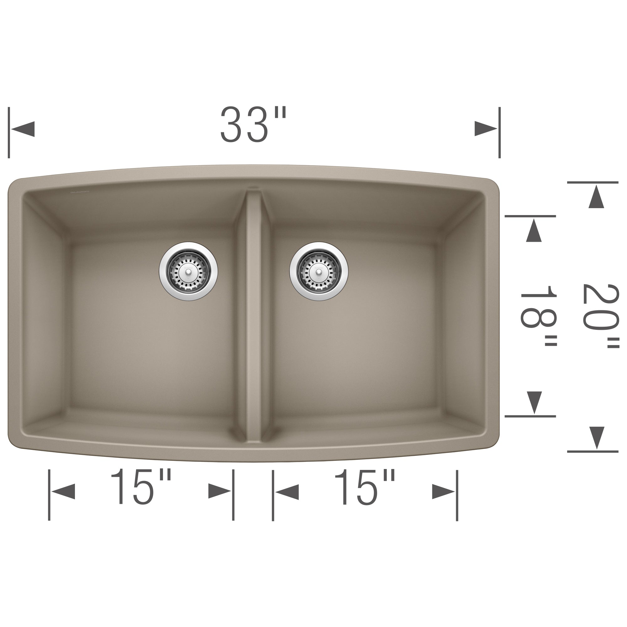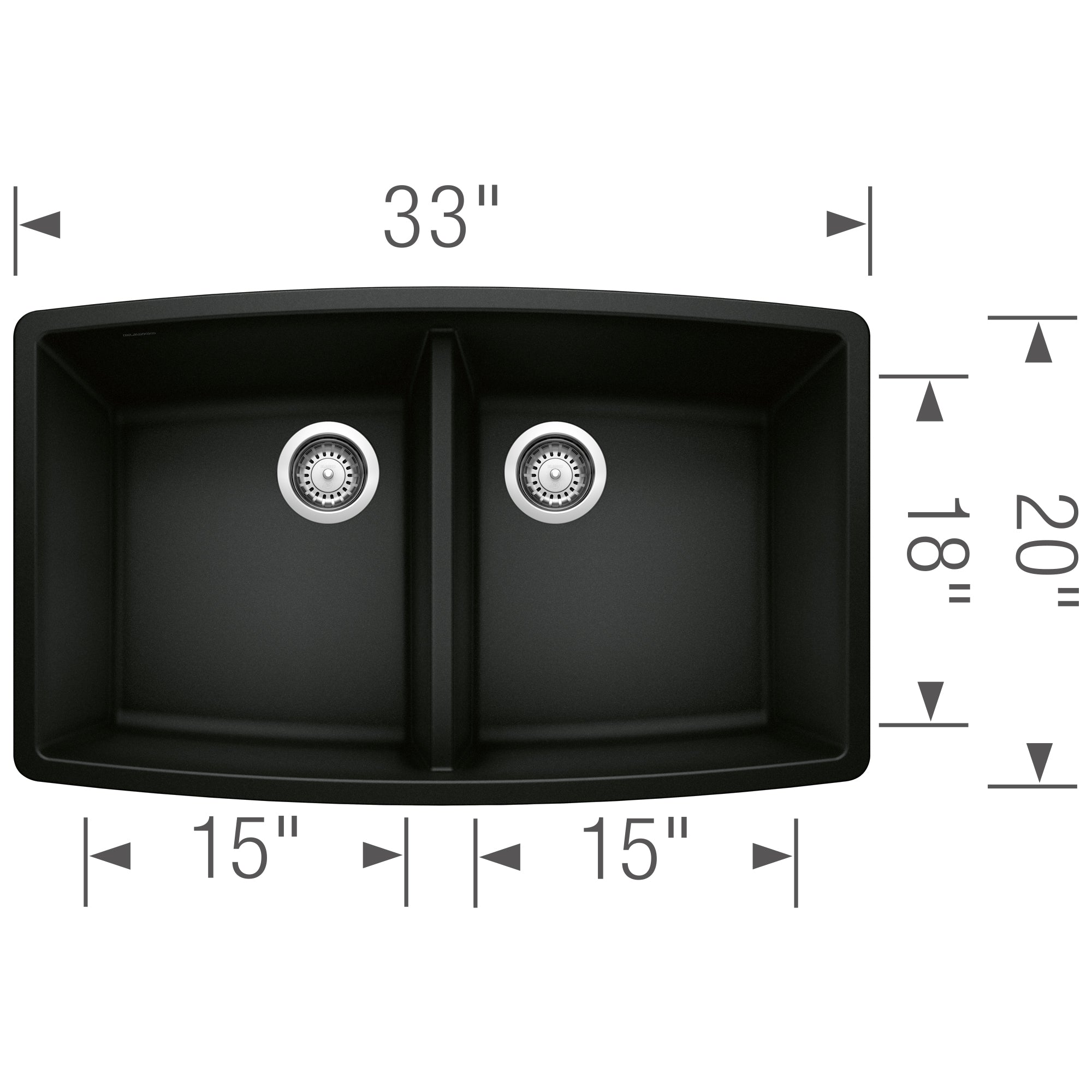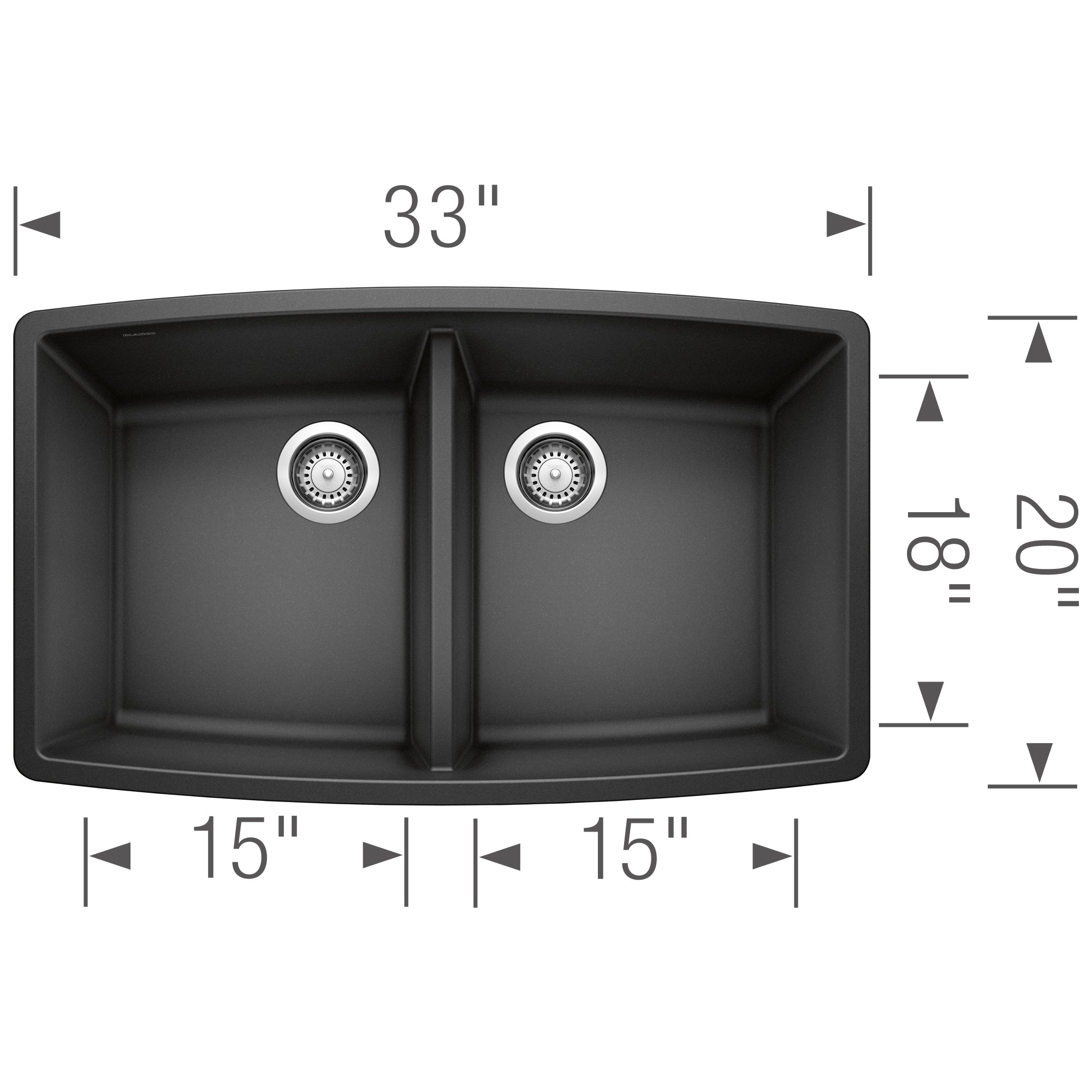 BLANCO Performa SILGRANIT 33" 50/50 Double Bowl Undermount Kitchen Sink