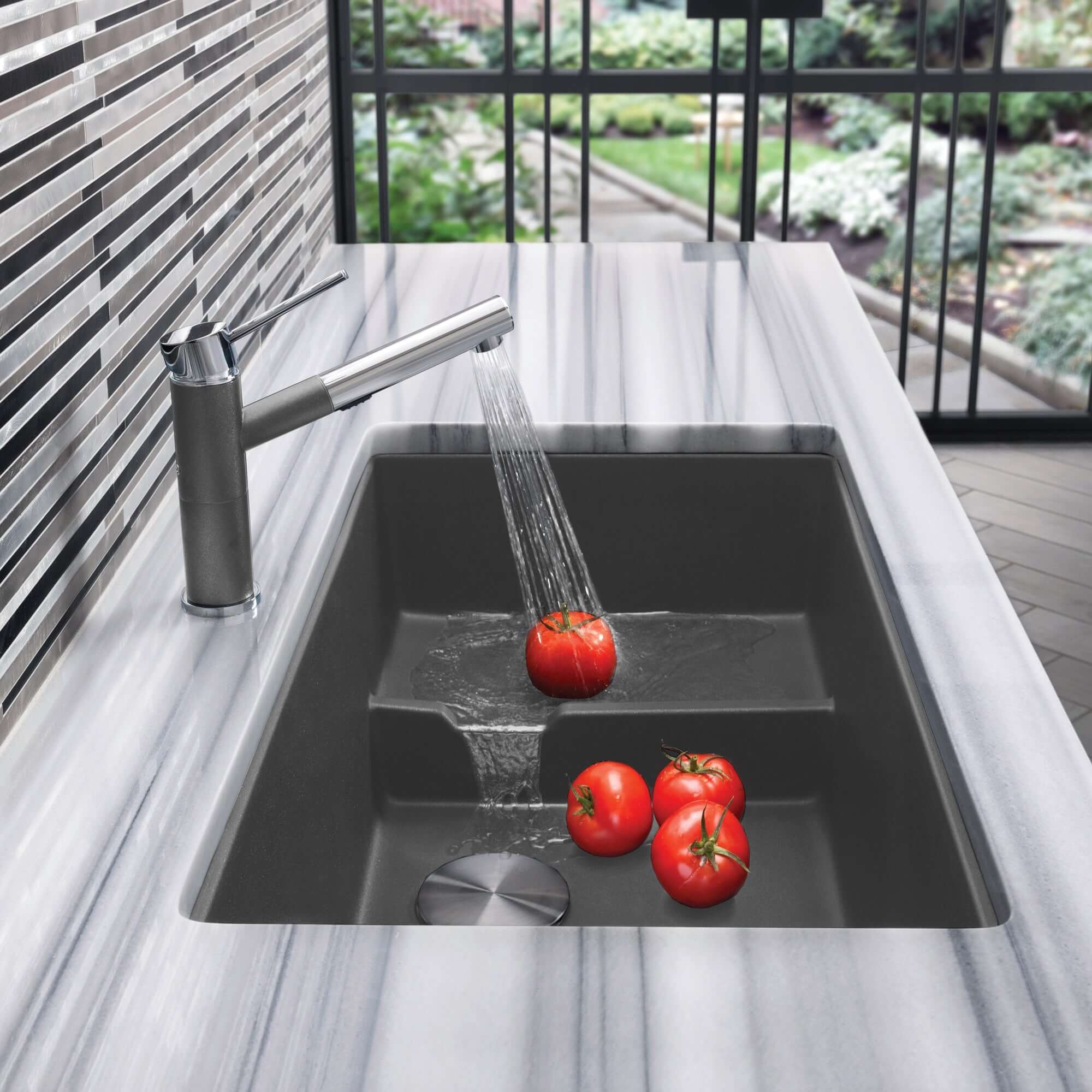 BLANCO Precis Cascade SILGRANIT 29" Single Bowl Undermount Kitchen Sink with Colander