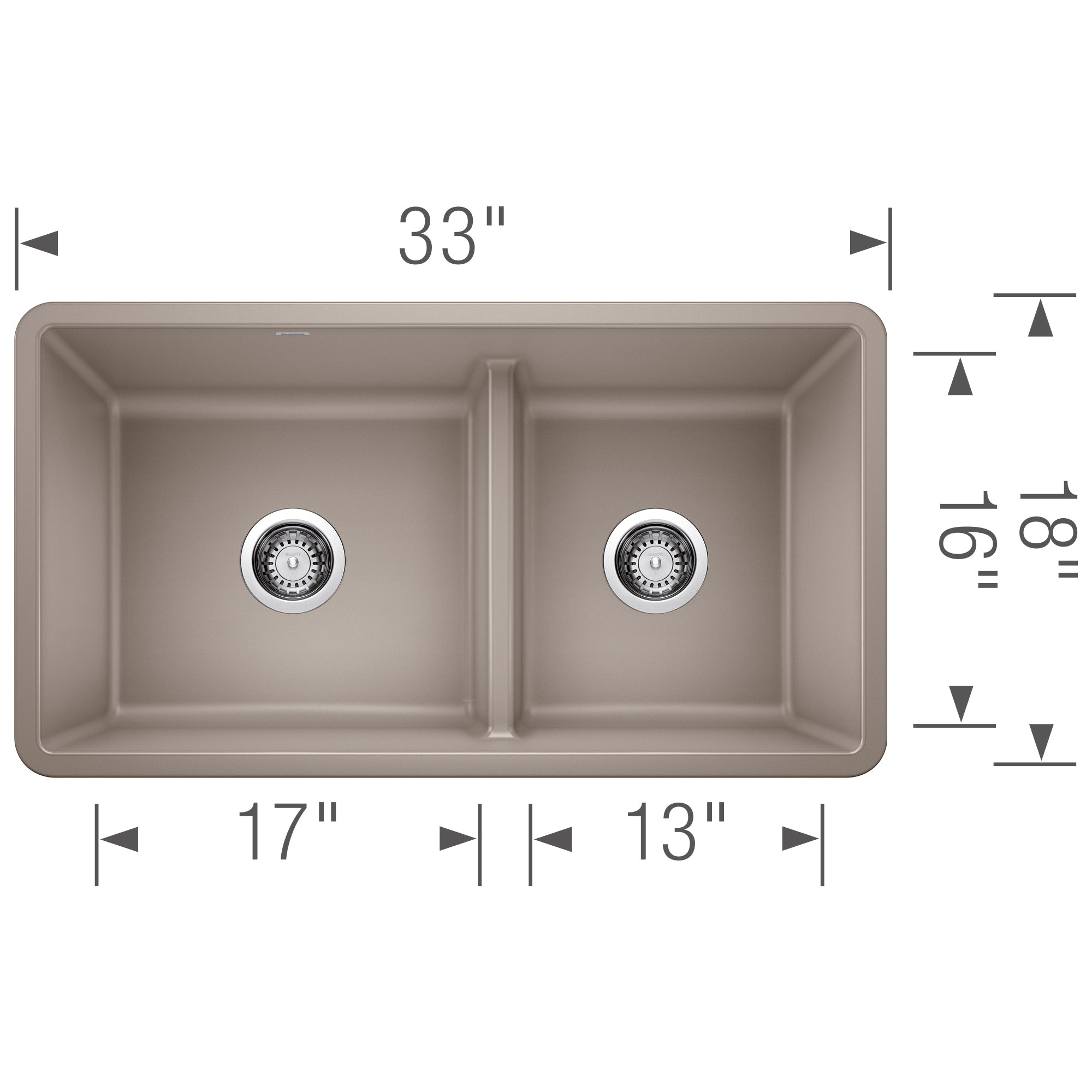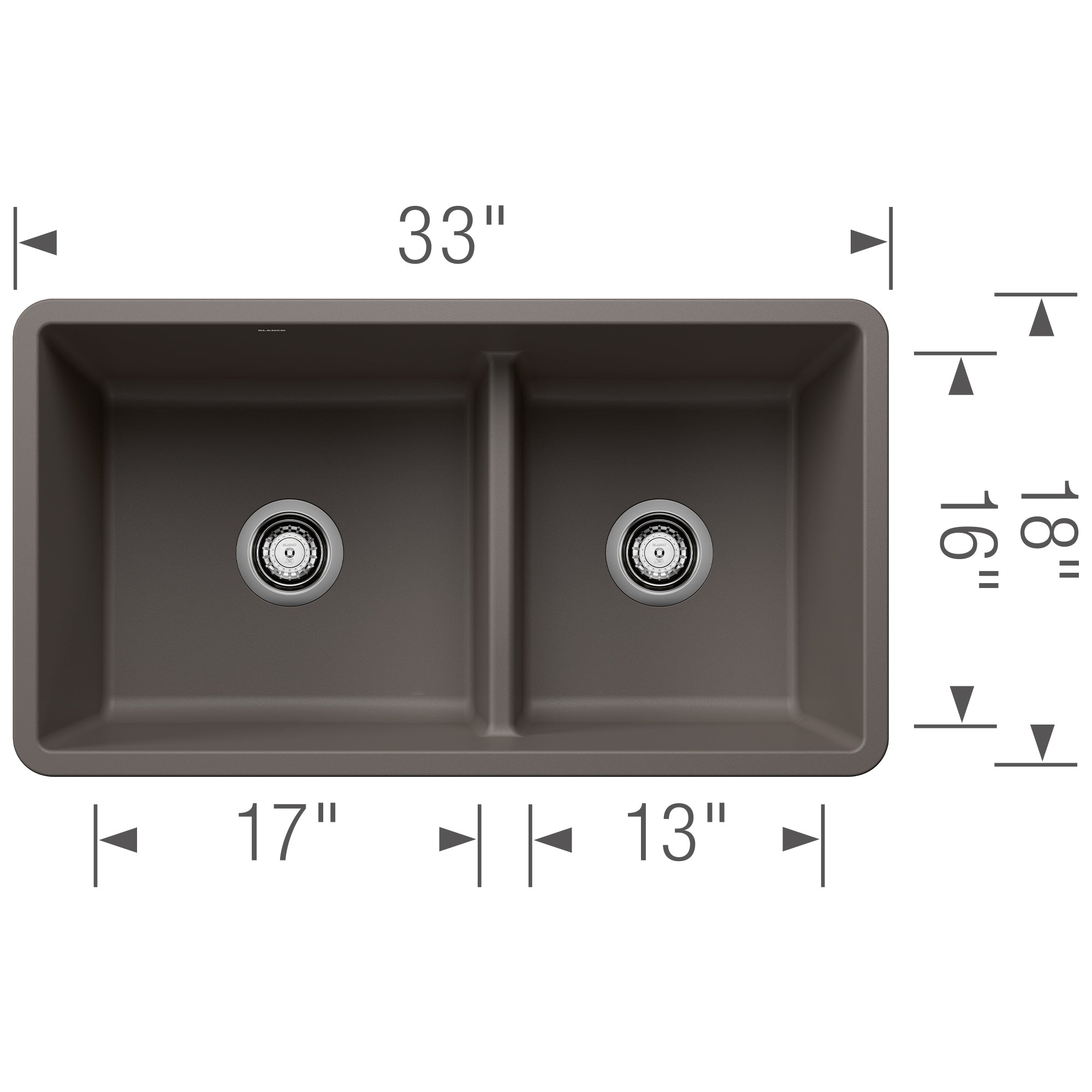 BLANCO Precis SILGRANIT 33" 60/40 Reversible Double Bowl Undermount Kitchen Sink with Low Divide