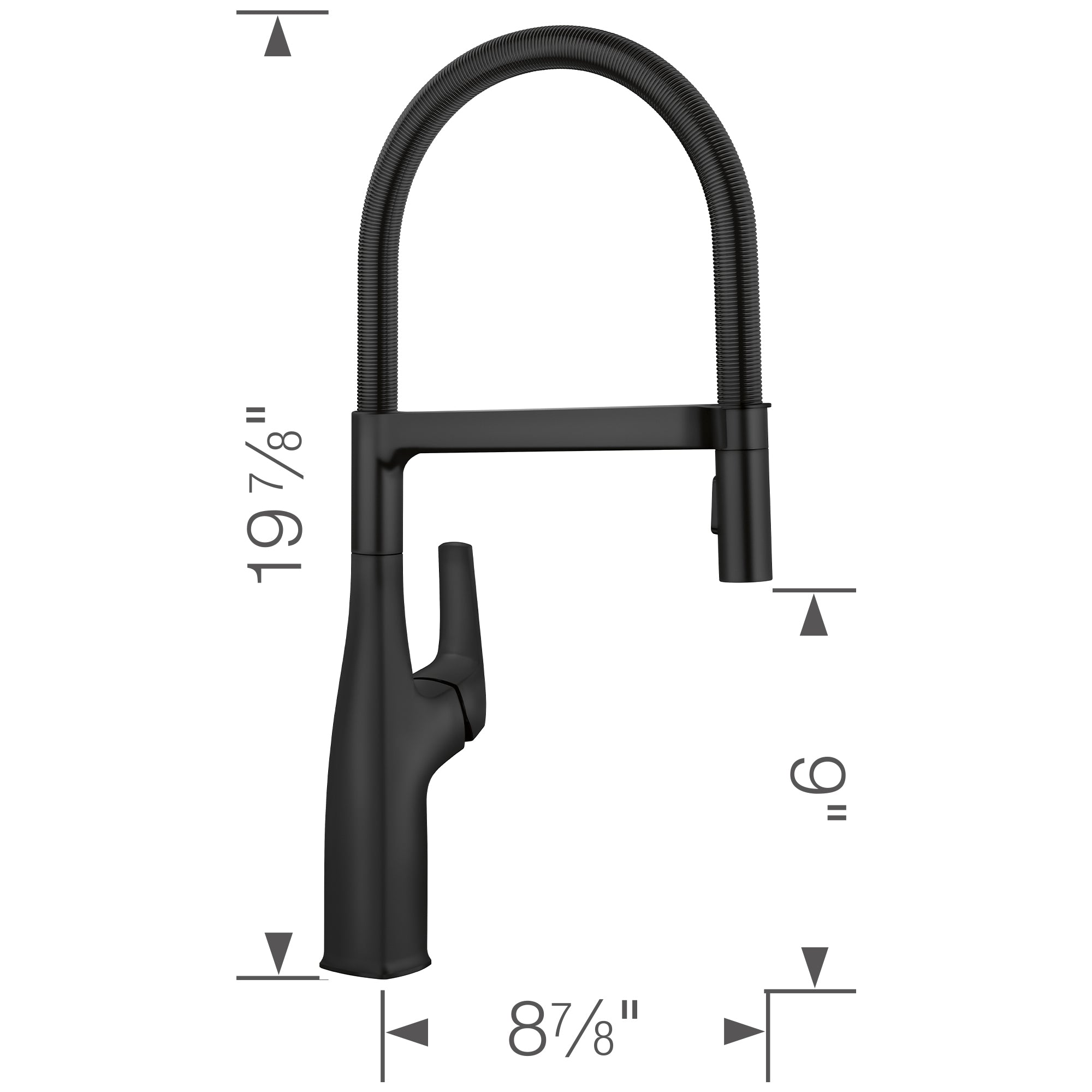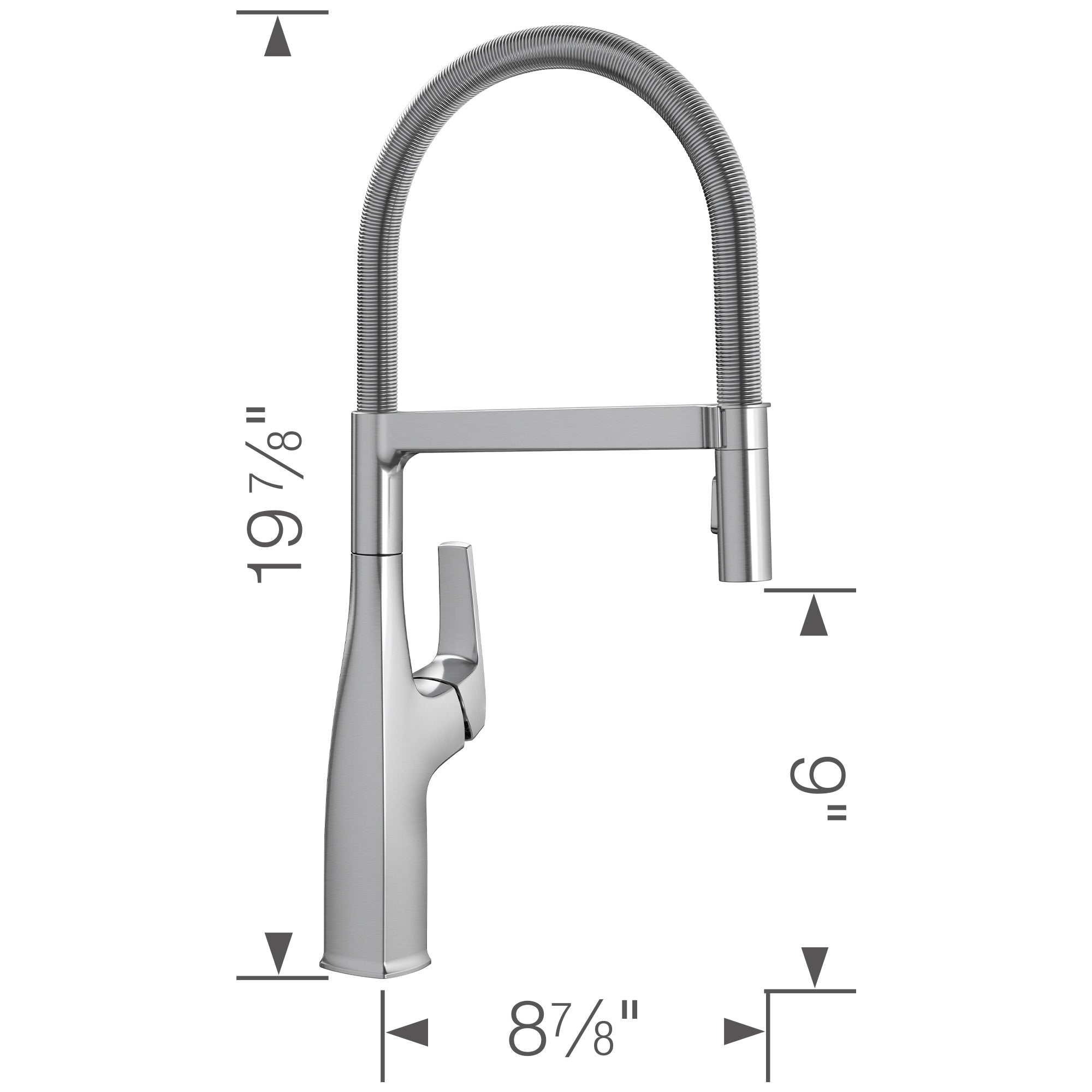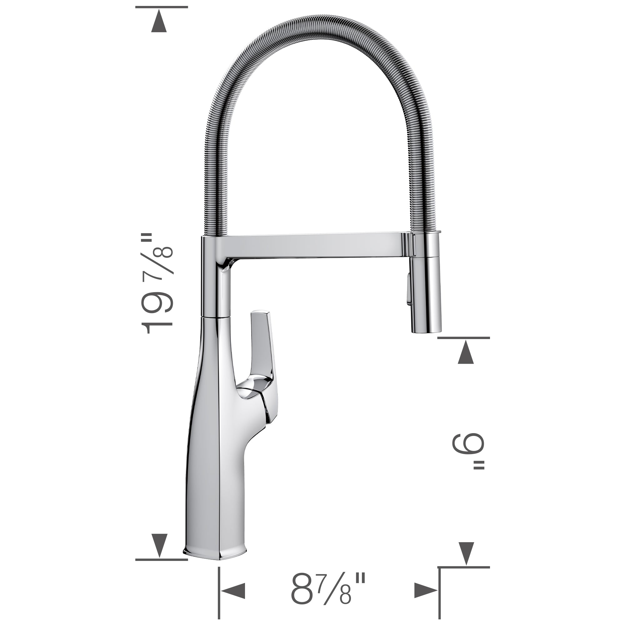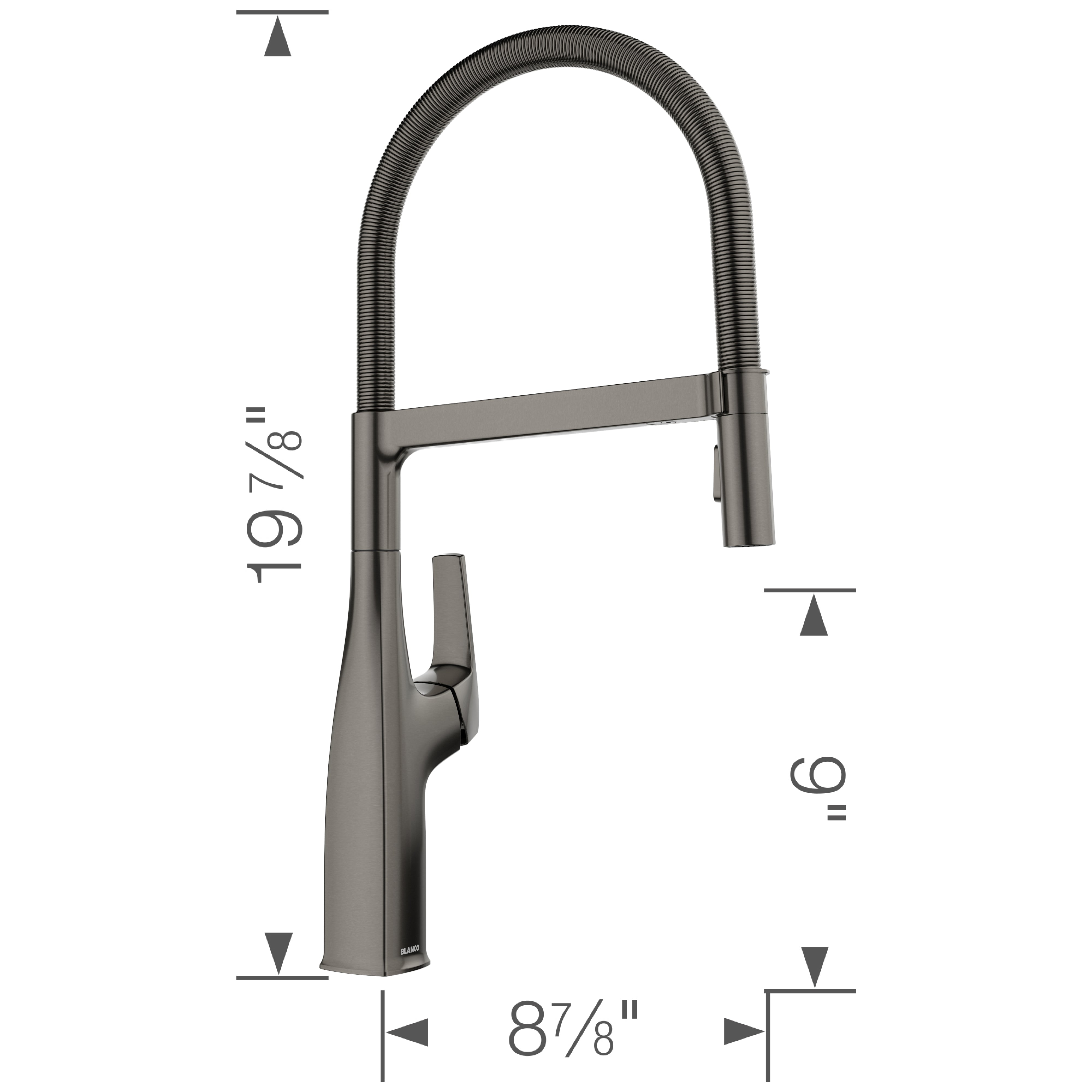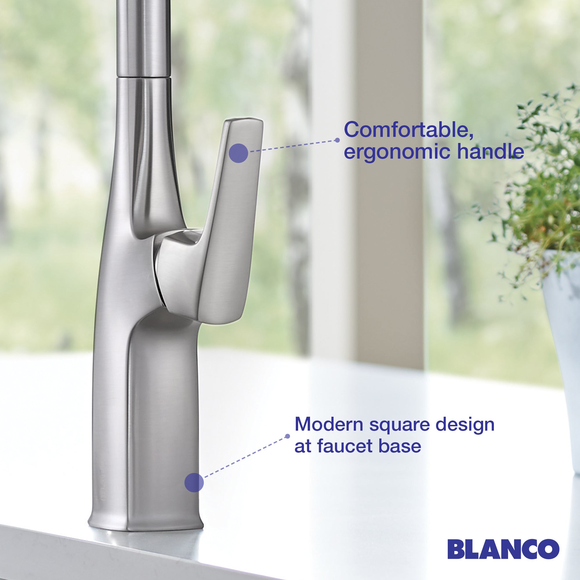 Bring commercial kitchen functionality to your home with the BLANCO Rivana Semi-Professional Kitchen Faucet, featuring the iconic closed coil design that BLANCO originated for residential use. This professional-grade faucet combines industrial styling with contemporary aesthetics through the distinctive square base that transitions seamlessly into a rounded high-arc gooseneck spout, creating a sophisticated profile that delivers both visual impact and exceptional functionality. The solid brass construction ensures lasting durability and corrosion resistance, while the premium finish options resist tarnishing to maintain the faucet's refined appearance through years of demanding kitchen use. The closed coil spring design provides flexible movement and professional-grade performance that adapts to every kitchen task, from filling large stock pots to detailed food preparation.
