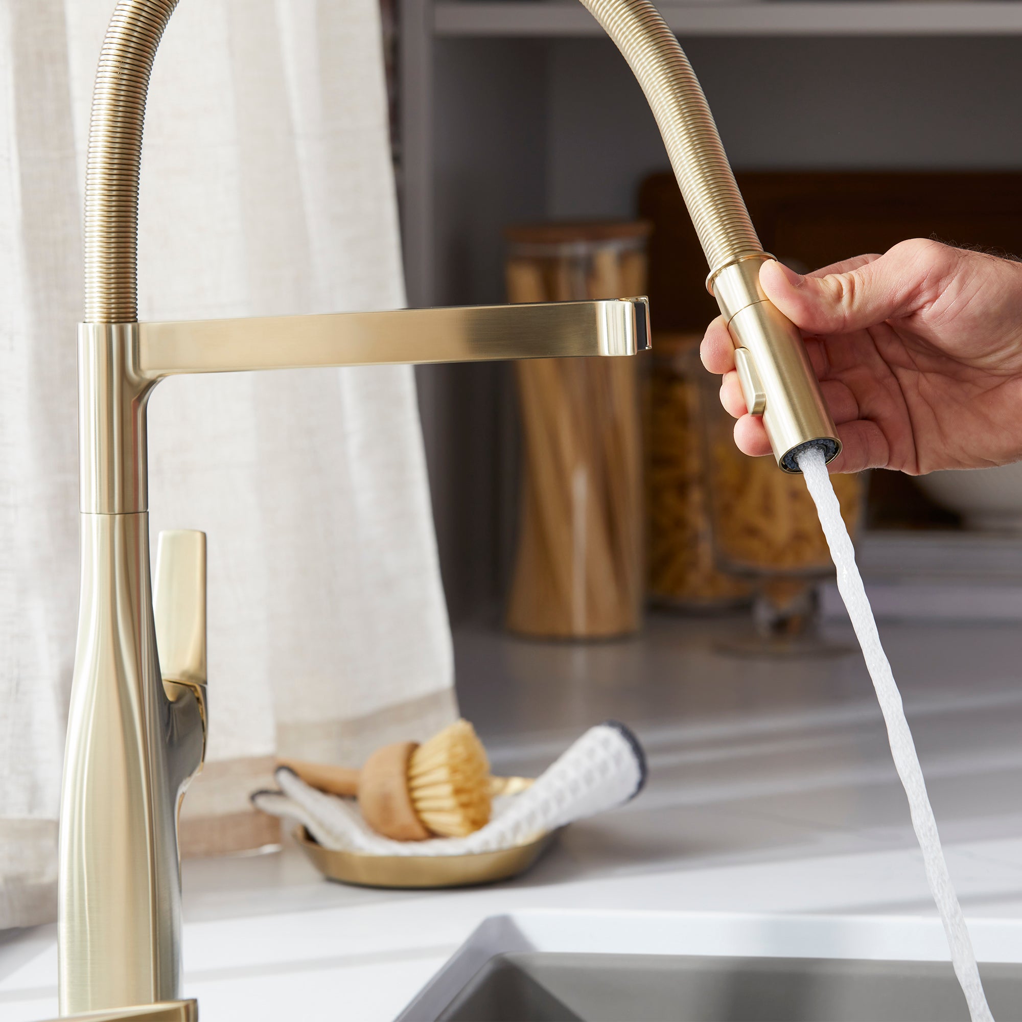 The semi-professional design brings commercial kitchen capabilities to home environments, providing the power and flexibility that serious home chefs need for ambitious cooking projects. The high-arc gooseneck spout with 360-degree rotation delivers complete workspace coverage, making it easy to fill large stock pots, rinse baking sheets, and clean oversized roasting pans that don't fit comfortably under standard faucets. The dual-spray functionality adapts to different tasks, from powerful spray for removing stubborn residue to gentle stream for delicate washing, while the pull-down design extends your reach throughout the sink area. The professional-grade construction ensures the faucet withstands the demands of frequent cooking and entertaining, and the intuitive single-handle control allows precise temperature and flow adjustment even when your hands are full or messy from food preparation.