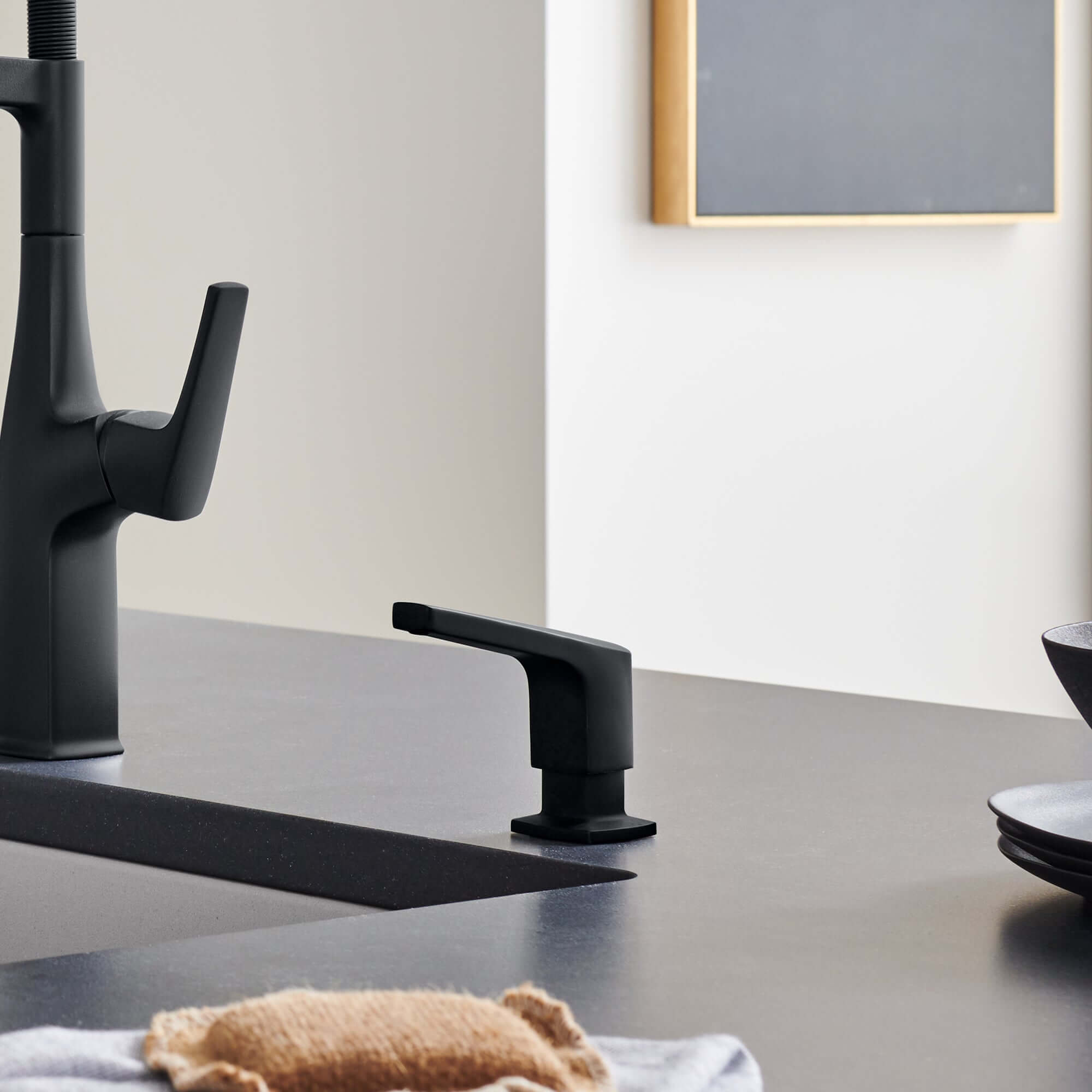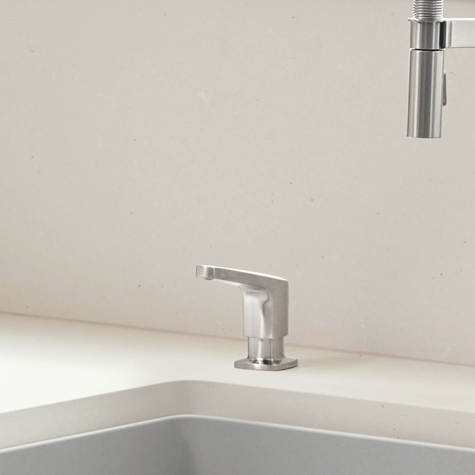 The Rivana soap dispenser features clean, contemporary lines that reflect European design sensibility while maintaining the streamlined aesthetic that defines modern kitchens. The design avoids excessive ornamentation in favor of refined simplicity, creating a sophisticated presence that doesn't compete with other design elements in your space. The solid brass construction with premium finish options ensures the dispenser maintains its appearance over time, while the coordinated finishes allow you to match your Rivana faucet for a cohesive, intentional look. This design approach works beautifully in modern kitchens where clean lines, quality materials, and functional elegance are priorities, and the compact profile ensures the dispenser integrates seamlessly without creating visual clutter at your sink area.