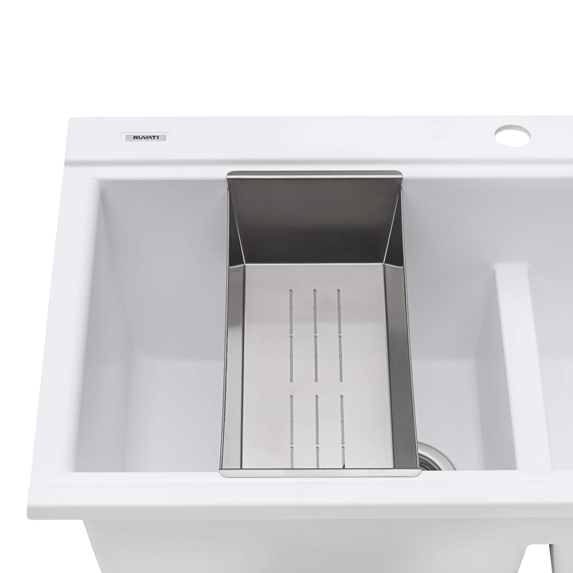 Ruvati 34" epiGranite Dual Bowl Workstation Kitchen Sink - Arctic White - RVG1350WH