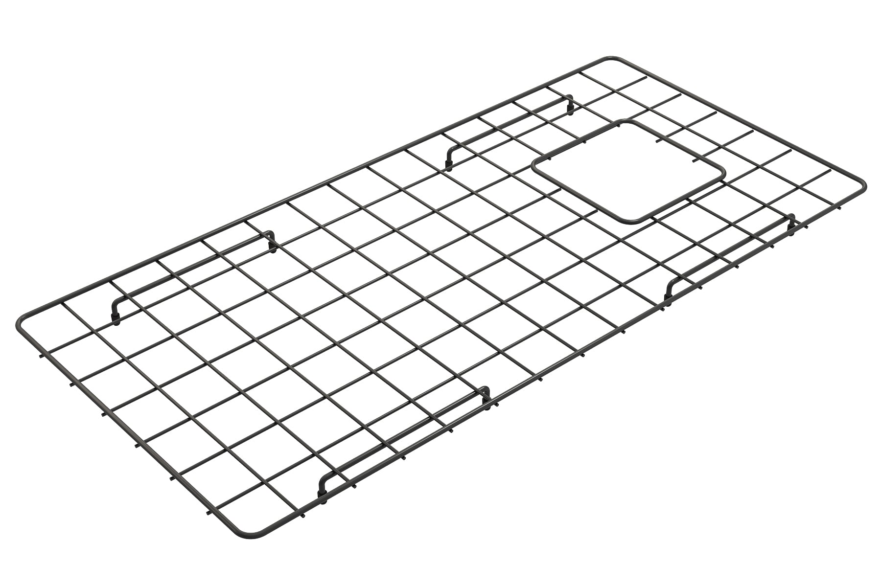 This custom-fitted stainless steel sink grid is specifically designed for the BOCCHI Sotto Step-Rim 34" fireclay kitchen sink (model 1693-XXX-0120). The precision engineering ensures a perfect fit while providing essential protection for your premium fireclay sink surface. Rubber feet elevate the grid to allow water to drain freely while preventing scuff marks on the sink bottom.