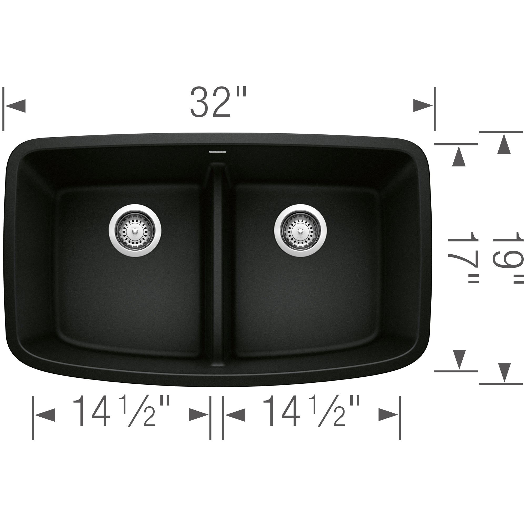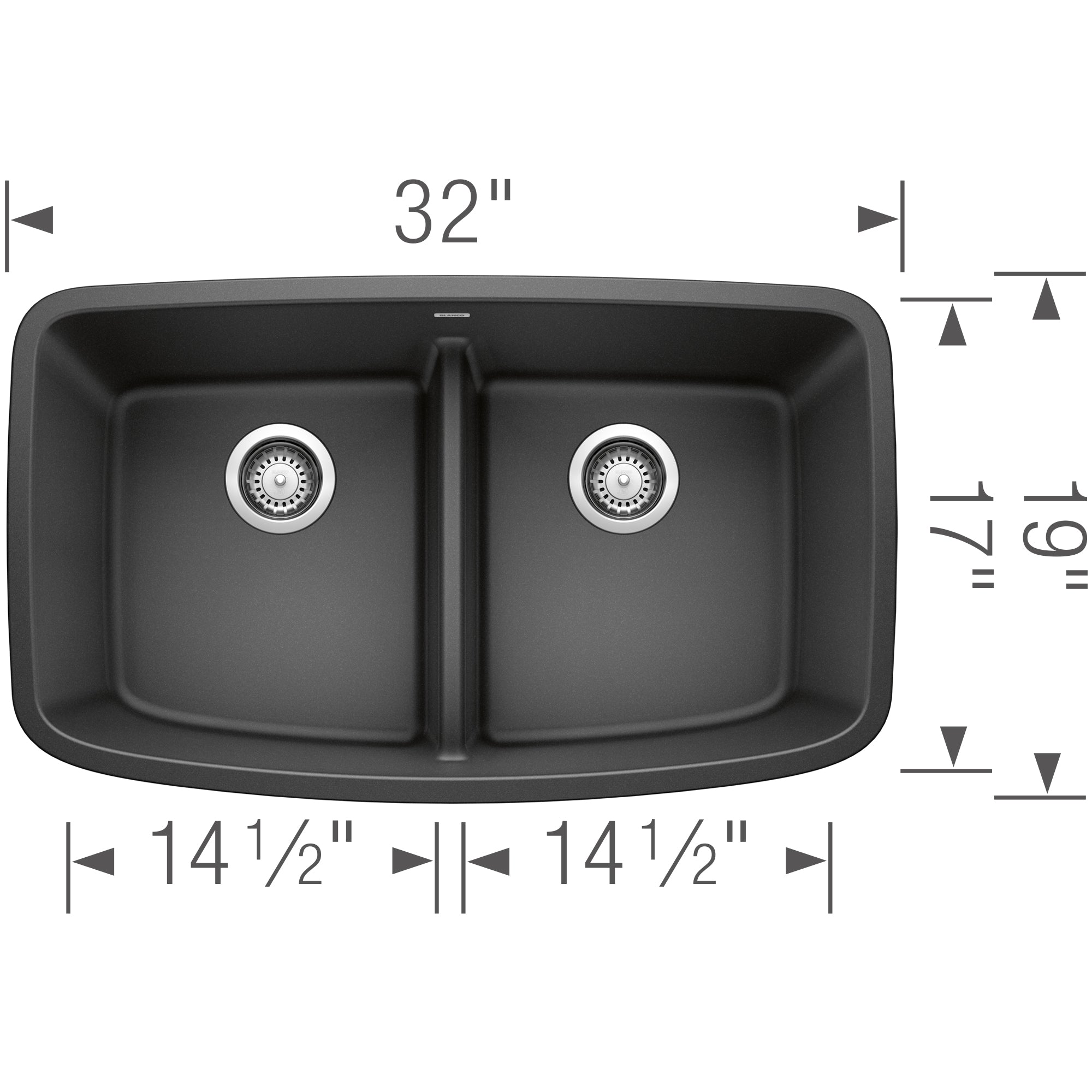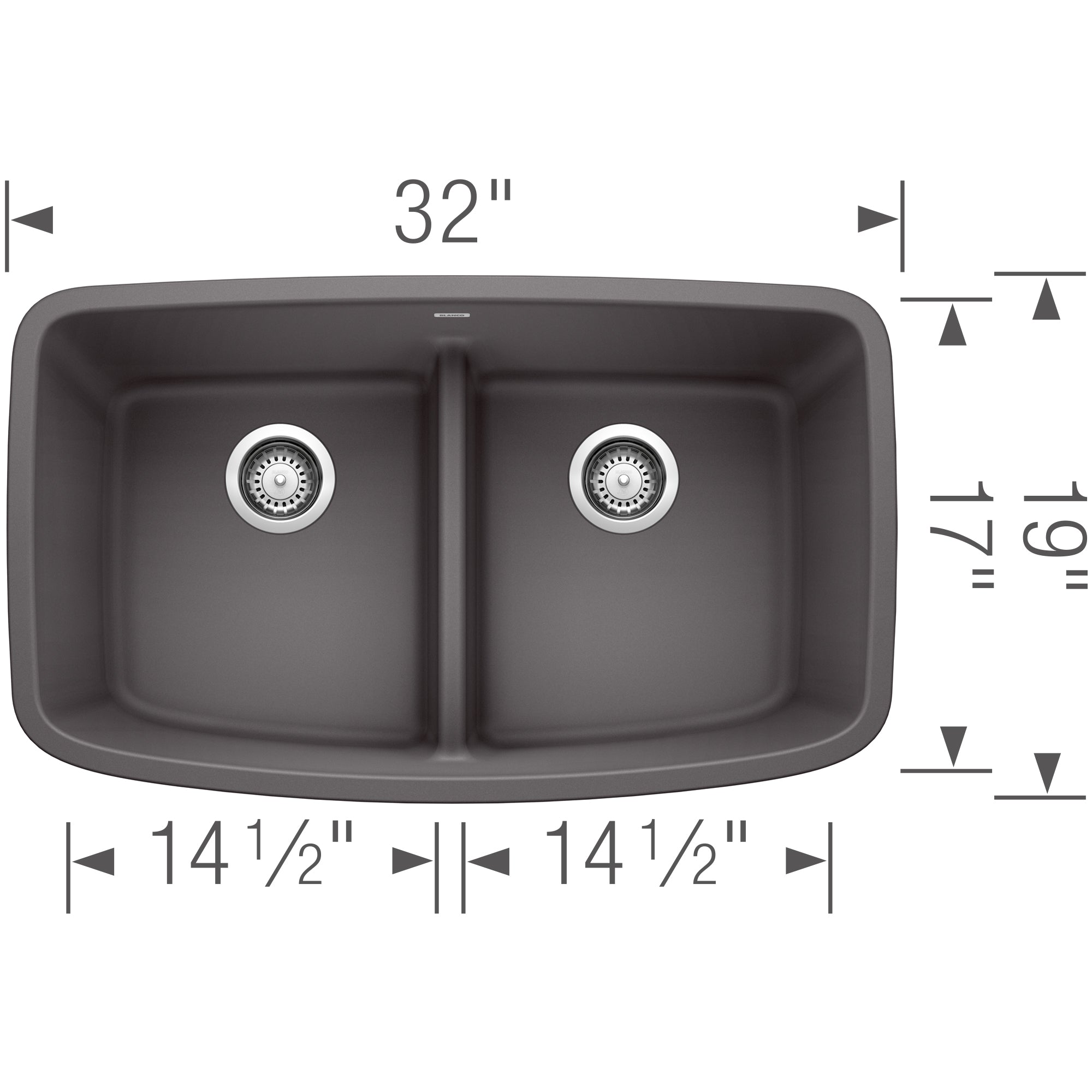 BLANCO Valea SILGRANIT 32" 50/50 Double Bowl Undermount Kitchen Sink with Low Divide