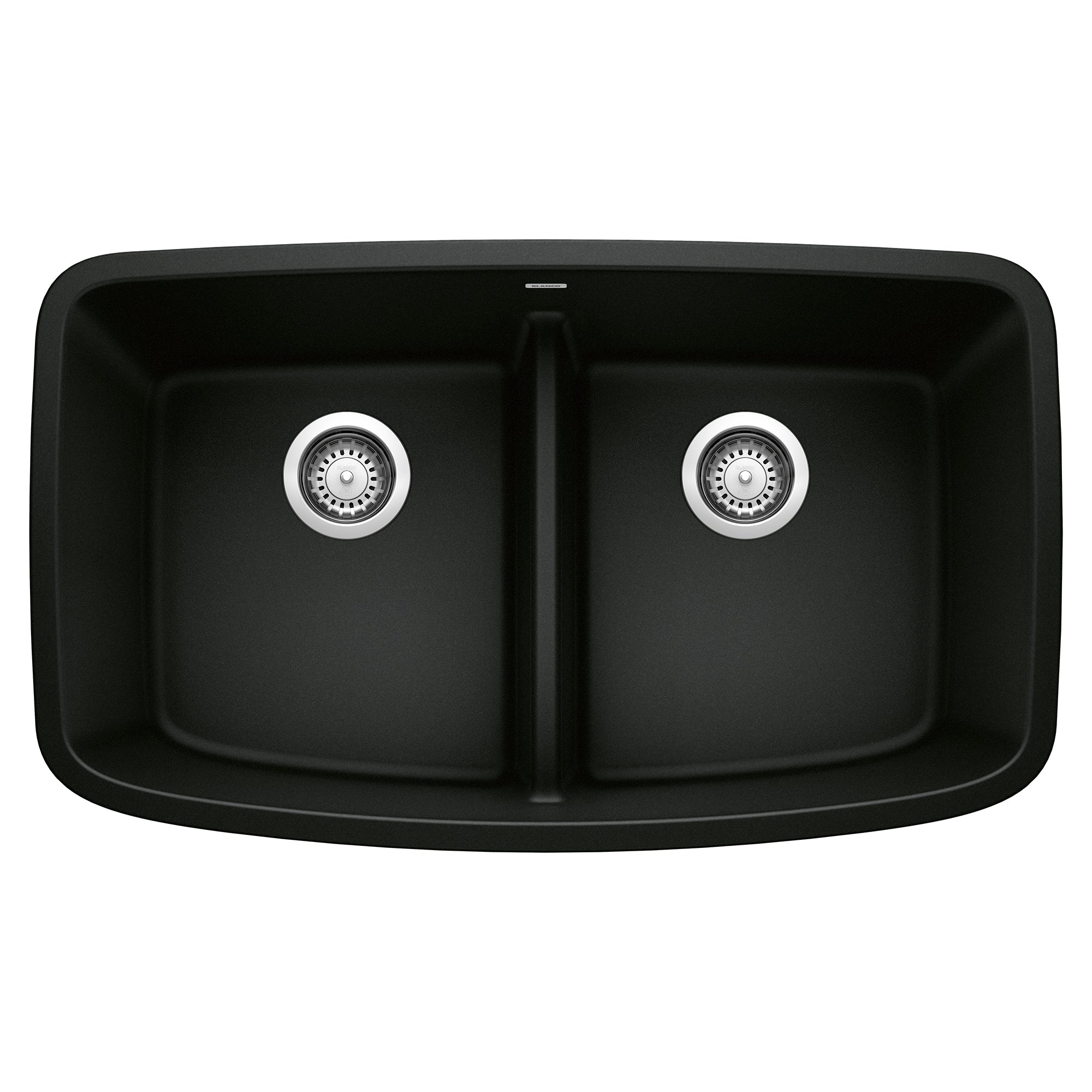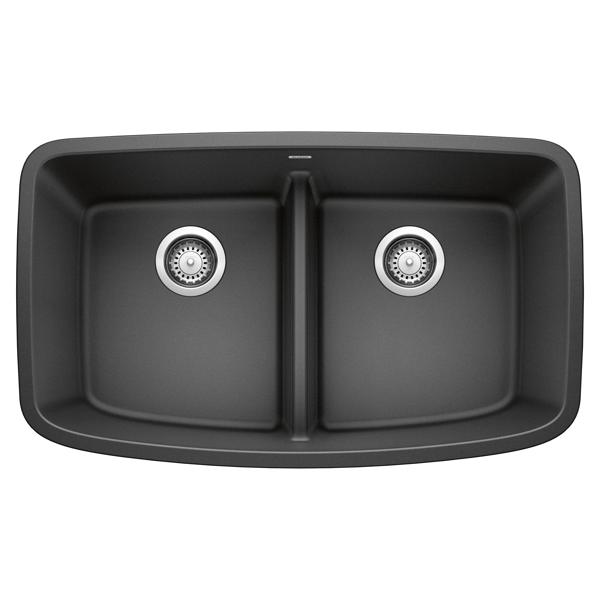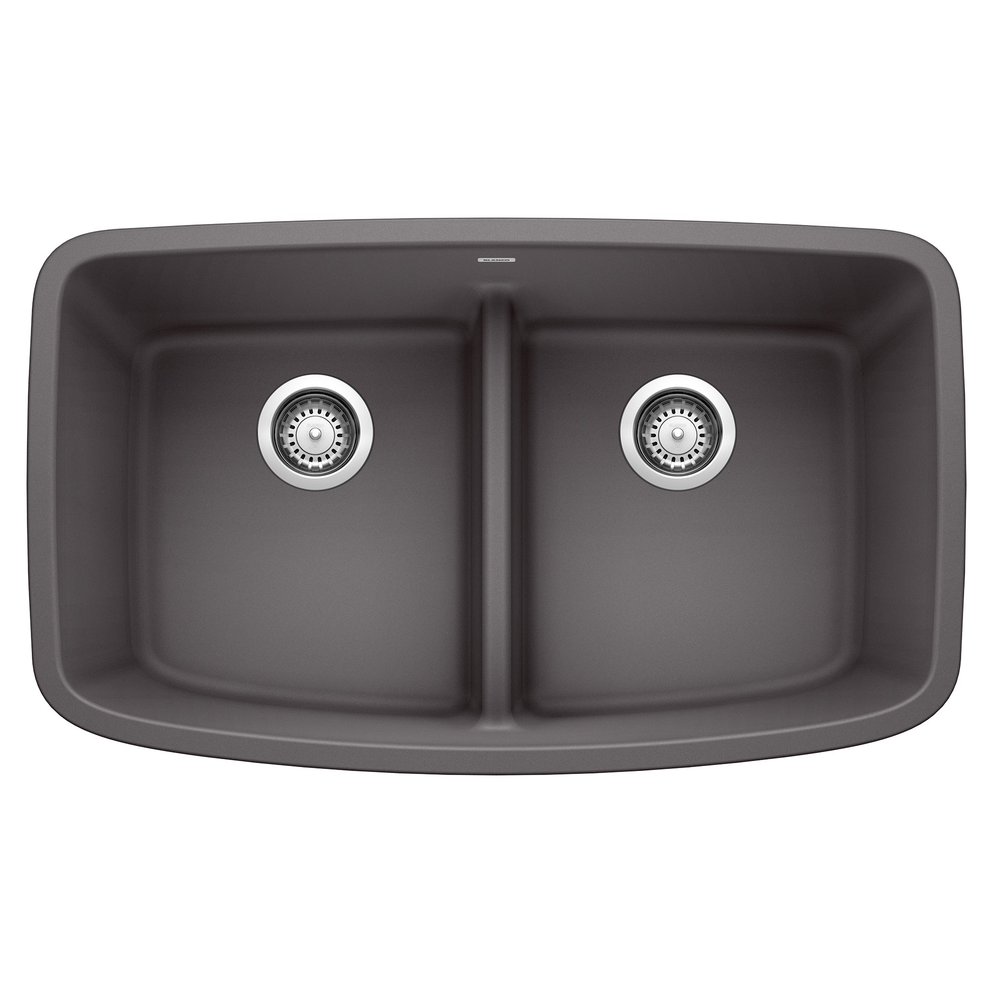 BLANCO Valea SILGRANIT 32" 50/50 Double Bowl Undermount Kitchen Sink with Low Divide