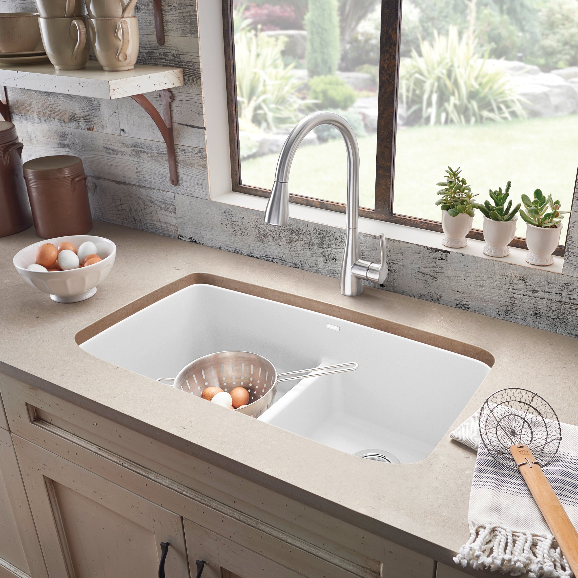 See for yourself how gracefully designed sinks combine curved elegance with low divide functionality.