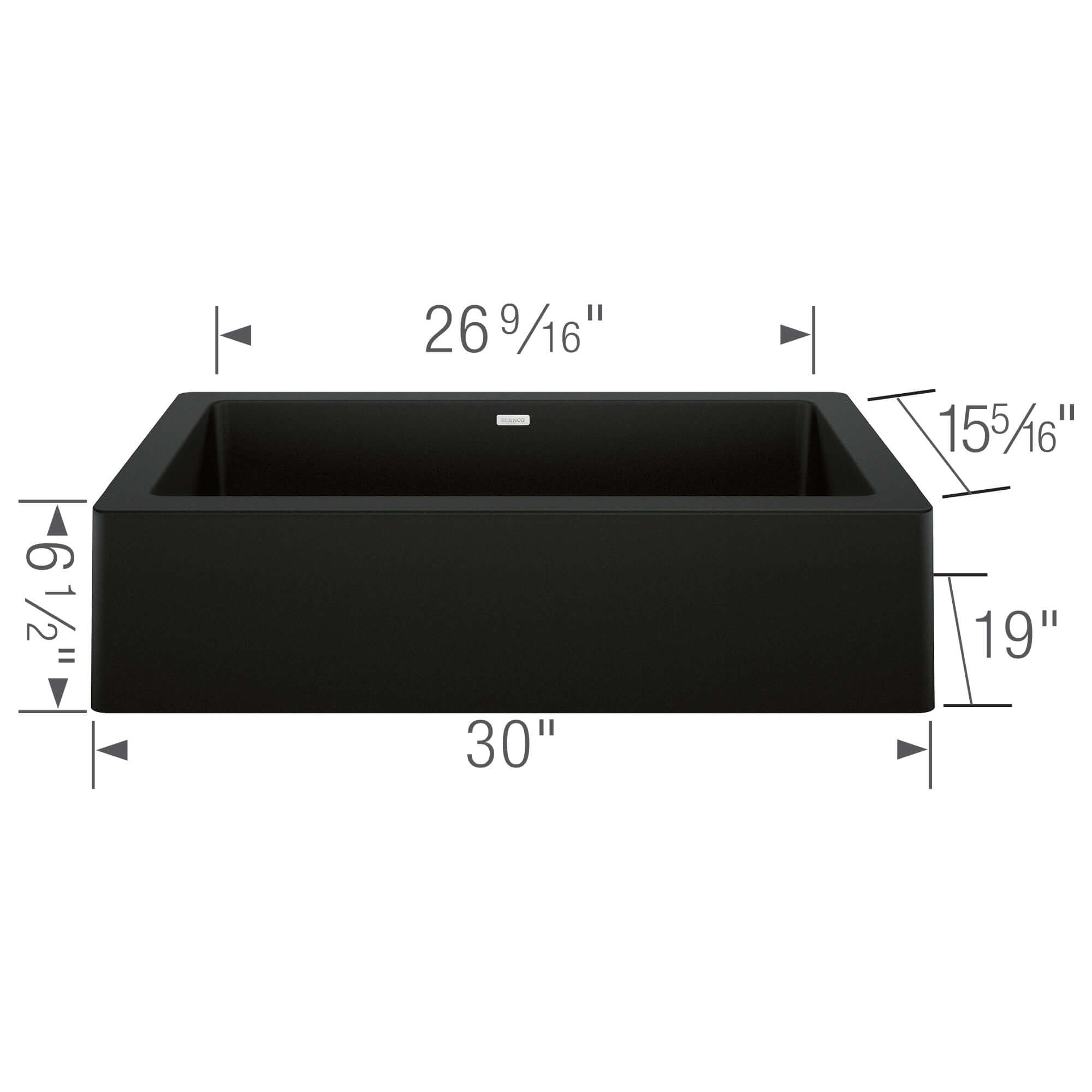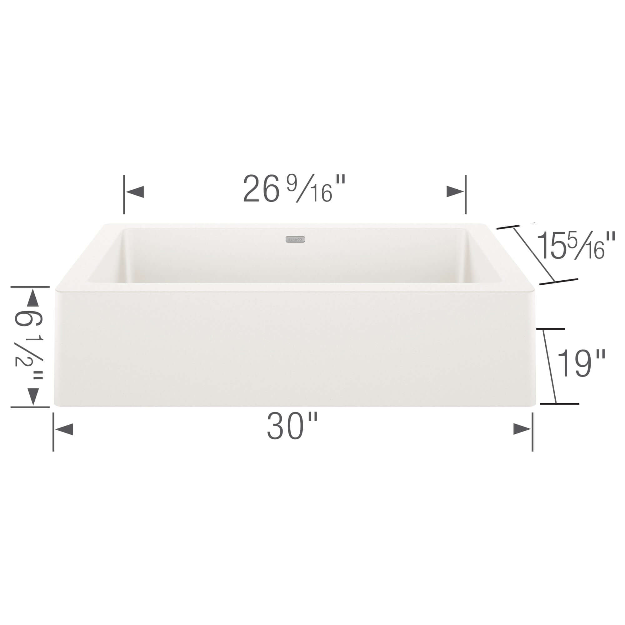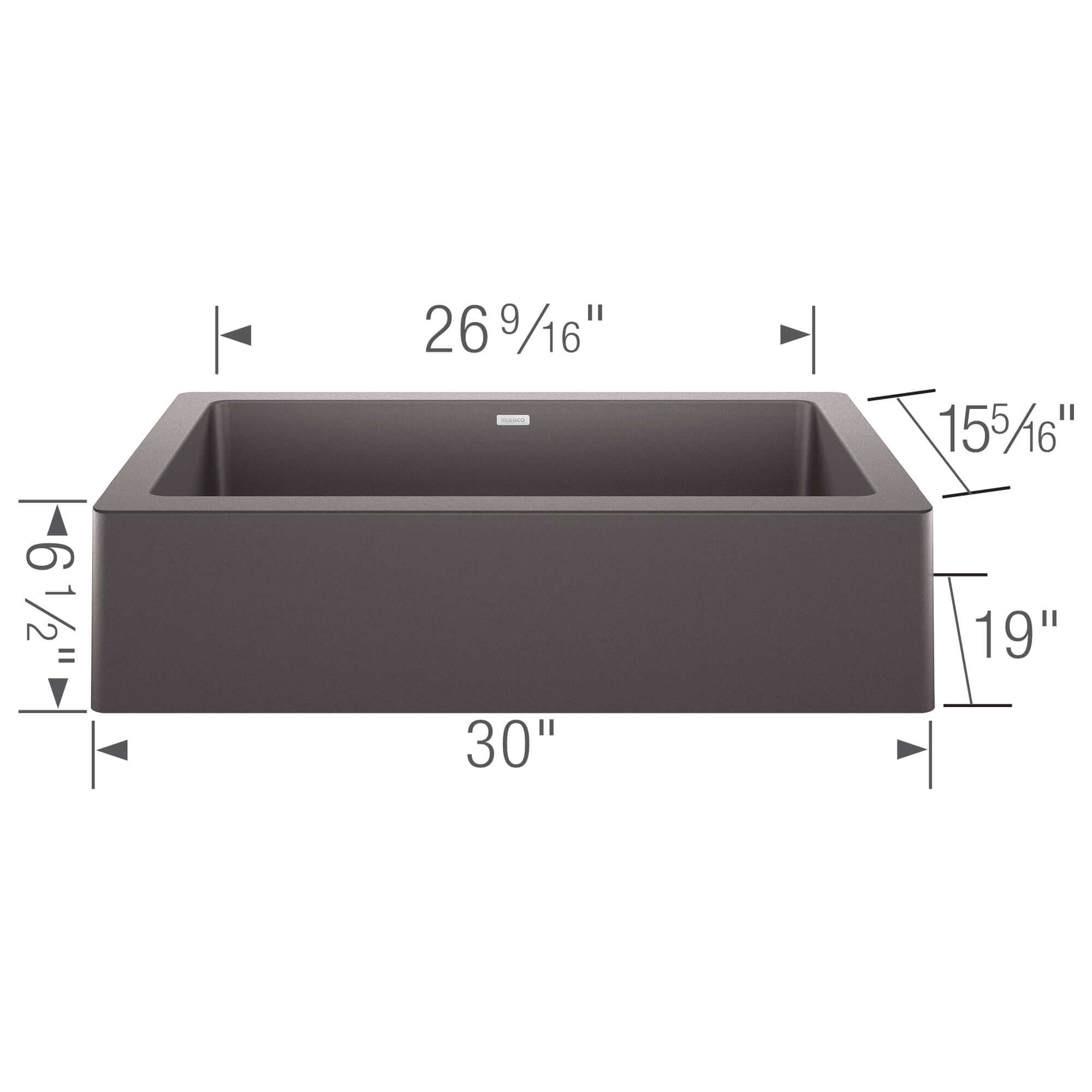 Note: Requires 30" minimum cabinet width. Cabinet front modification required for apron exposure. Cutout dimensions: 26.55" x 15.55". Basket strainer sold separately. Professional installation recommended.
