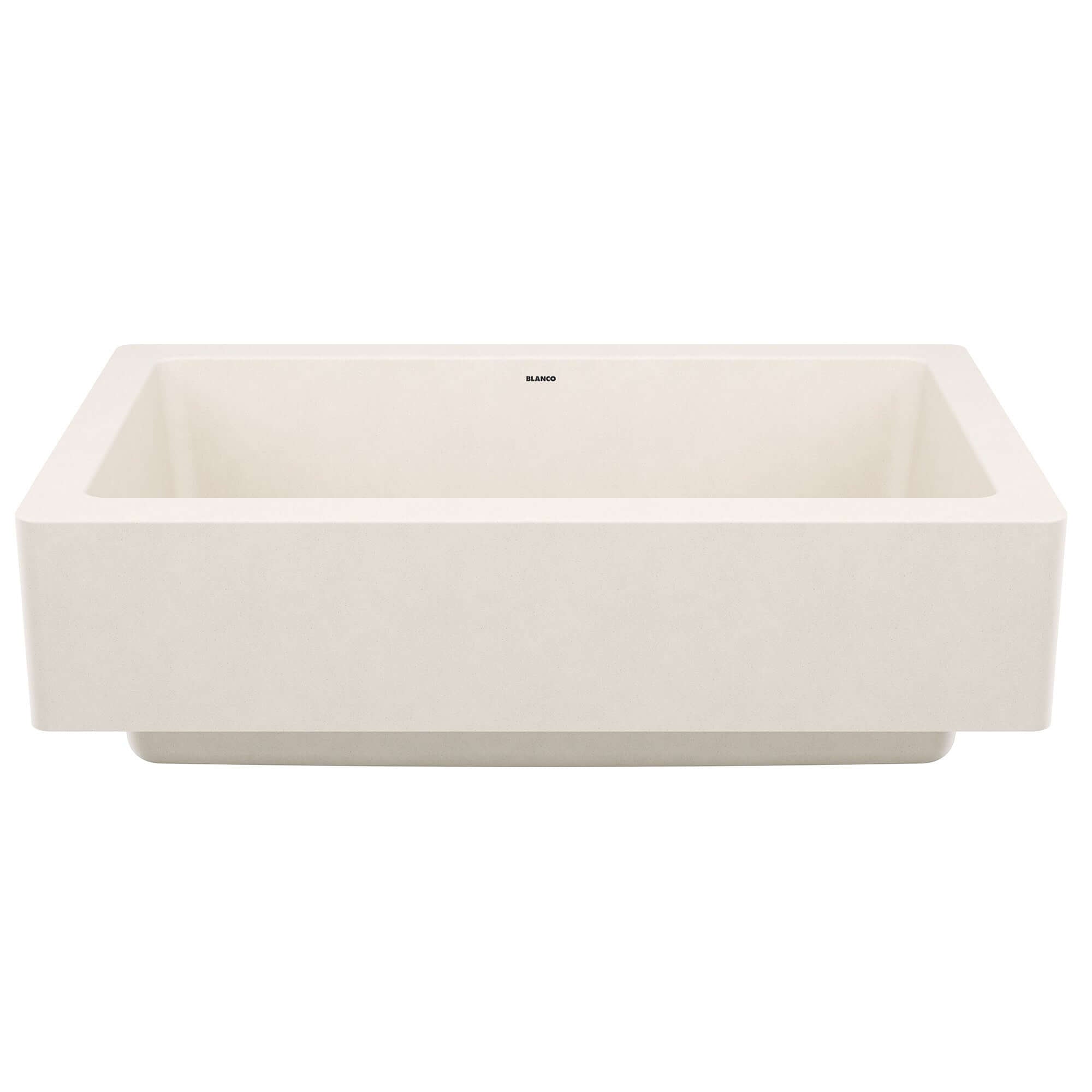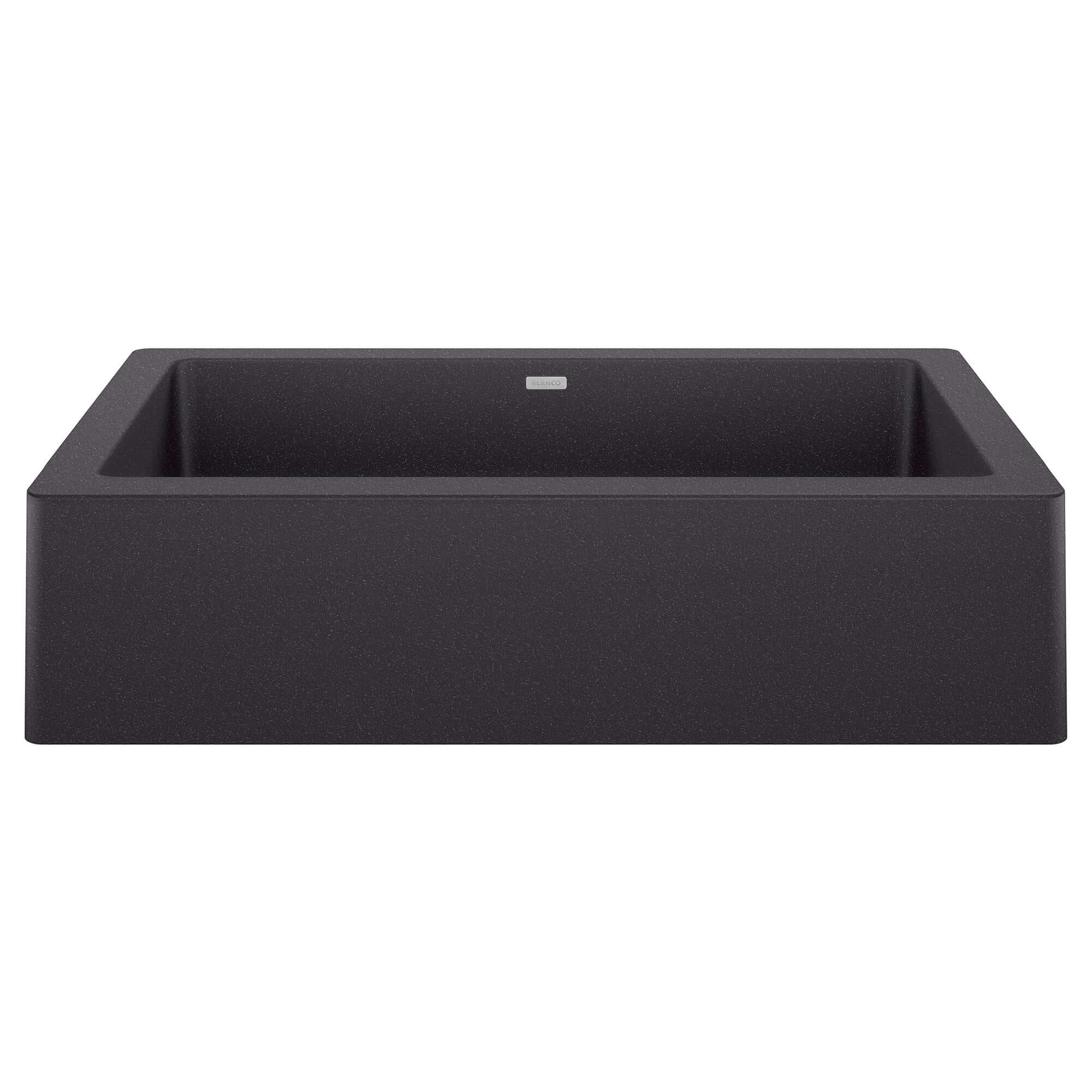 Transform your kitchen with the VINTERA 30" single bowl apron-front sink that reimagines the classic farmhouse style for modern kitchens. The slim 6.5-inch apron and generous 9-inch bowl depth deliver the aesthetic appeal of traditional farmhouse sinks while fitting into standard 30-inch width base cabinets—matching the sink width to the cabinet width without requiring oversized custom cabinetry. Made from BLANCO's patented SILGRANIT composite material, this sink combines the hardness of quartz sand with advanced engineering to withstand heavy cookware and hot bakeware. The versatile installation capabilities allow for unique flushmount placement, creating a seamless integration with your countertop that enhances both functionality and visual appeal. Note that farmhouse installation requires modification of the cabinet front to expose the apron.